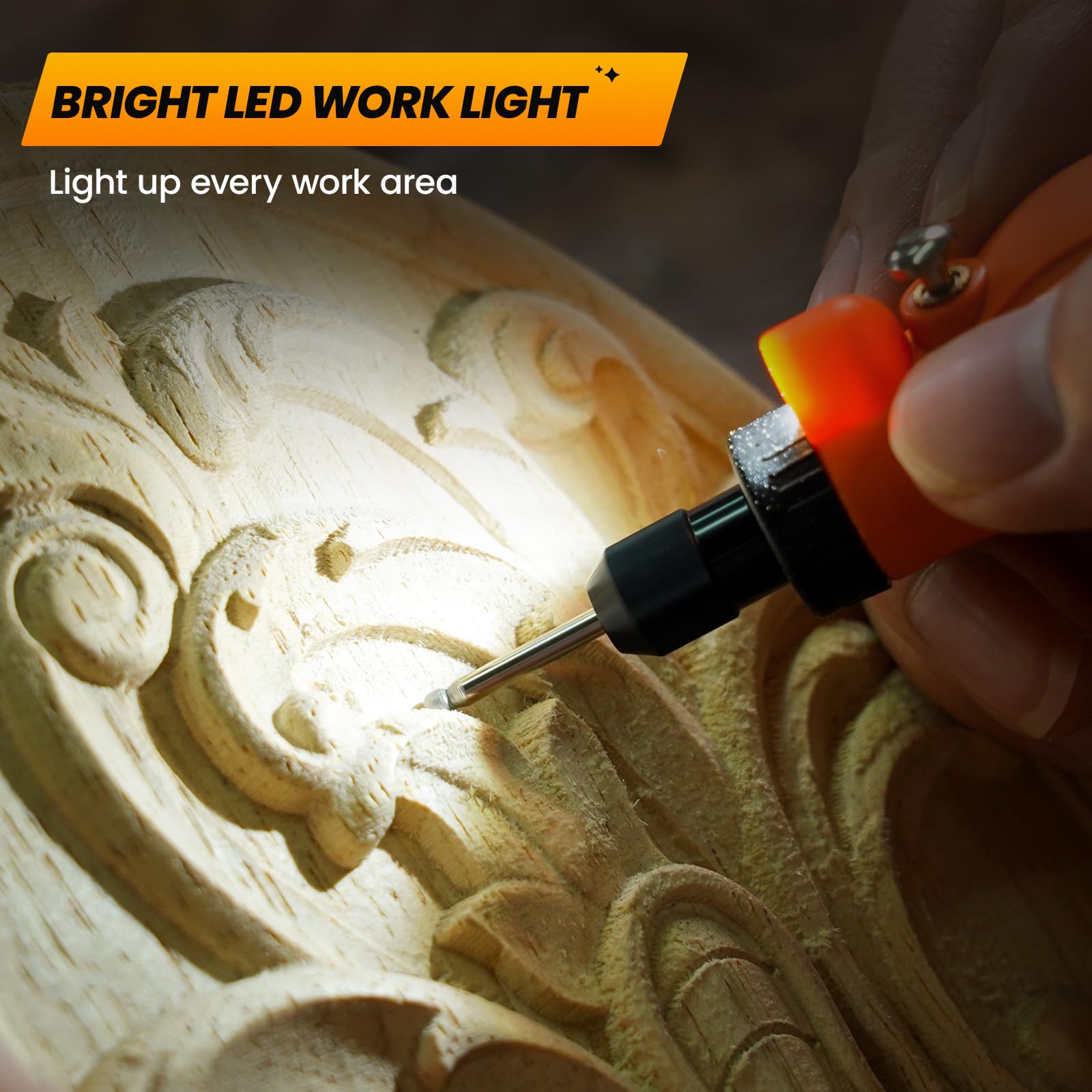 • 【5-Speed Settings】The cordless rotary tool has 5-speed adjustments (5000/8000/11000/14000/18000RPM) for easier speed control and to meet the power demands of different tasks. This allows for safe and careful sanding in stages, even for beginners who can easily control the speed. With the micro rotary tool, your creations are always handy