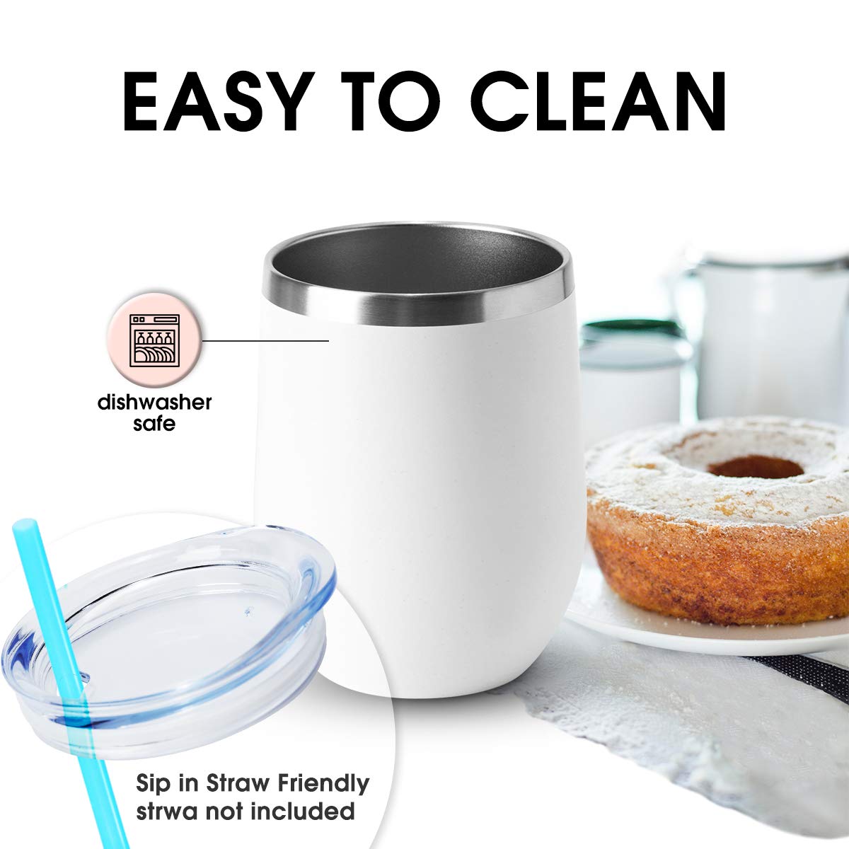 HASLE OUTFITTERS 12oz Wine Tumbler with Lid Stemless Wine Glasses Double Wall Vacuum Travel Mugs stainless steel Coffee Cup for Cold & Hot Drinks Wine Coffee Cocktails Beer 12 Pack White
