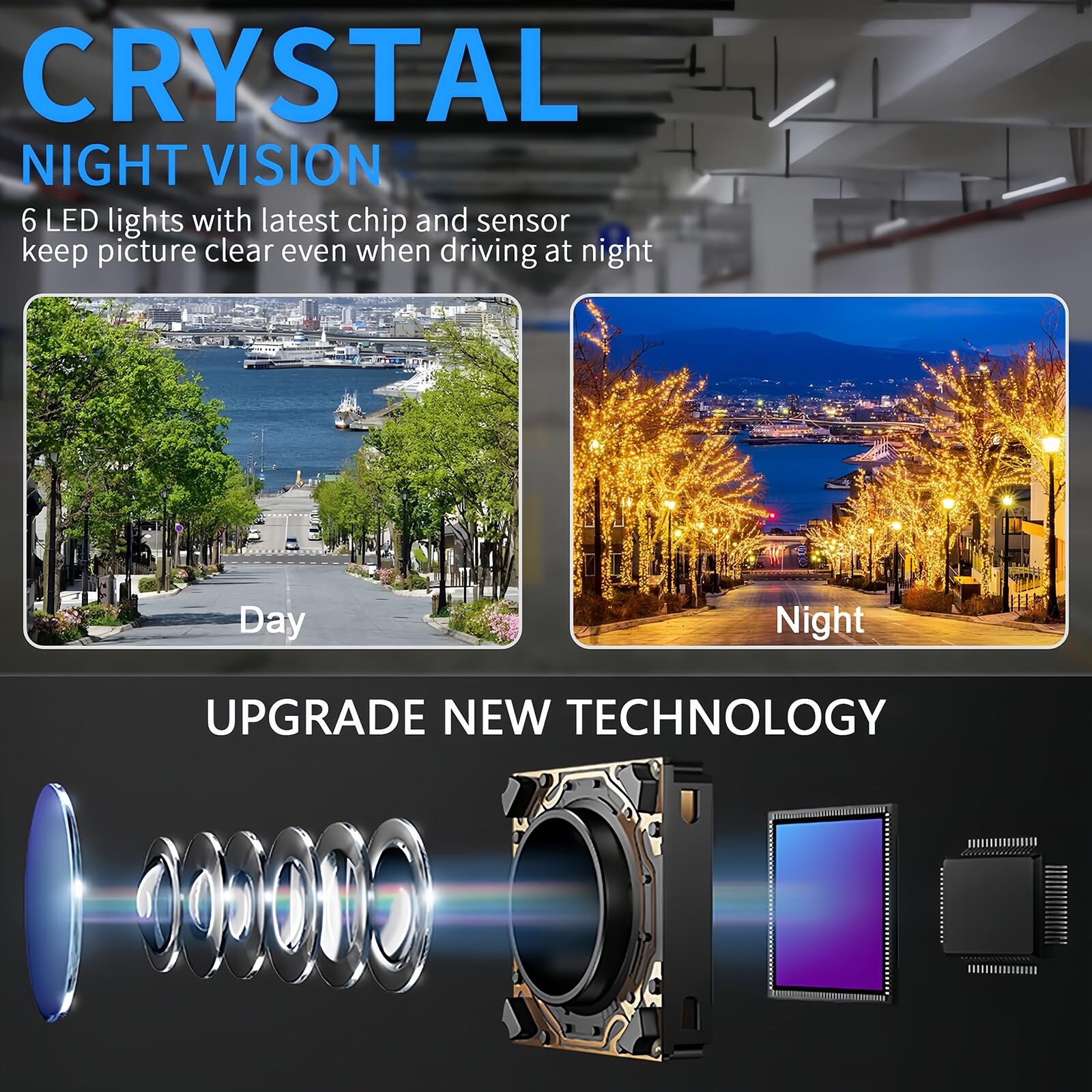 • Crystal Clear Night Vision for Low-Light Driving Experience sharp, detailed images even in low light. The built-in night vision feature ensures high-definition clarity when reversing in dark environments, helping you park safely at any time of day or night
