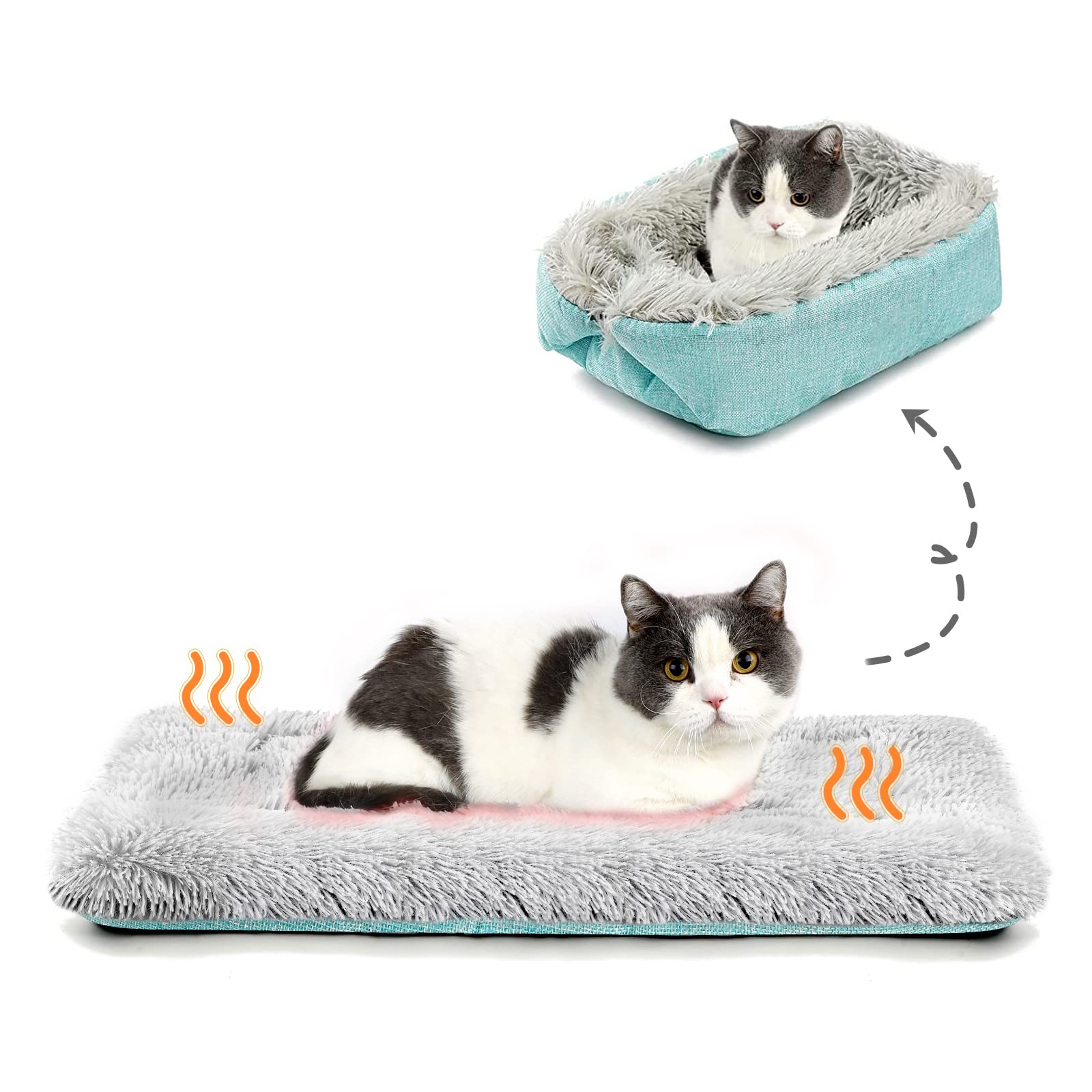 • ☀️ [2-IN-1 MAT & SELF-HEATING] - This self warming cat bed is a flat cushion mode and also can be folded into a bed. It can be placed in a dog cage in summer. It can be folded into a dog bed in winter, giving your friends a good rest space. Most of the time you use it in a flat mode. No electricity needed, reflect pets' own body heat.