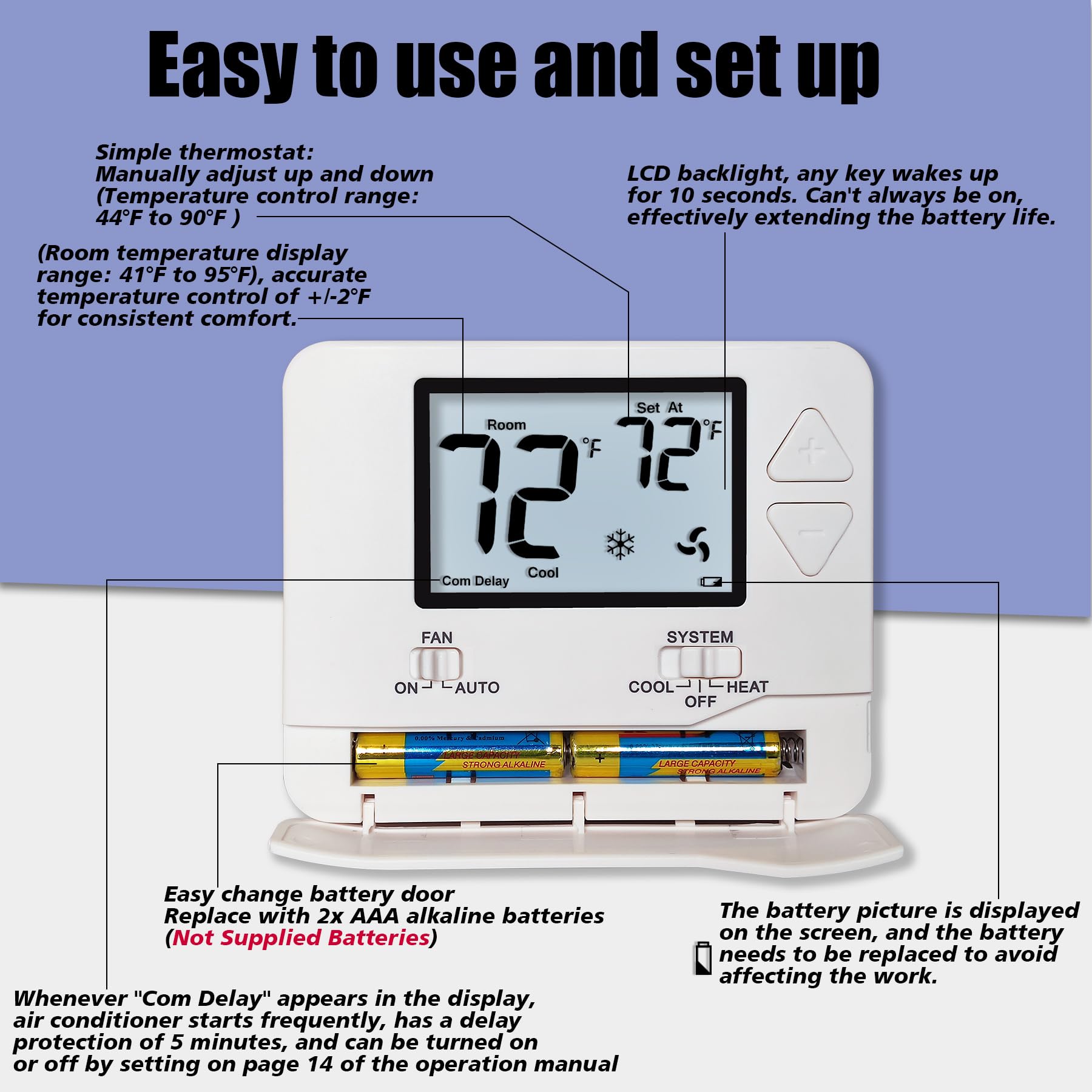 Heagstat Non-Programmable Thermostats for Home Conventional Single-Stage Systems, up to 1 Heat/ 1 Cool (with White Backlight)
