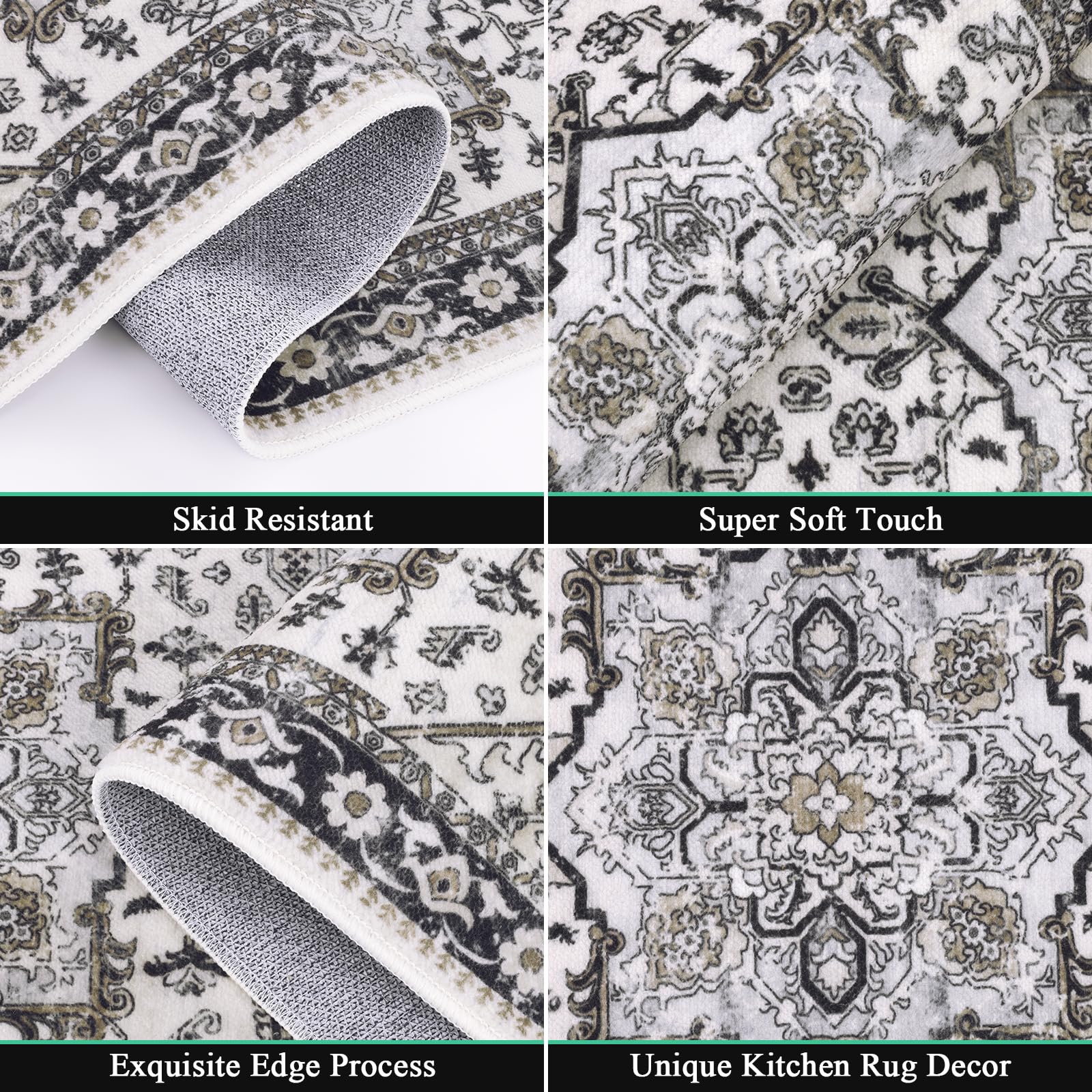 • No Slip Kitchen Rug Set with Runner: The boho kitchen floor mat set come with premium non skid TPR and cotton backing, durable, reliable and practical, which make our kitchen runner set effective to avoid slipping and scratching,protecting your family