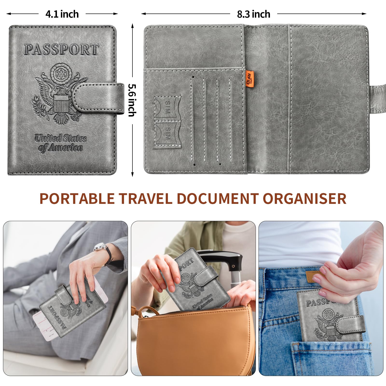 • 1. Magnetic Buckle Passport Holder: Our passport holder is designed with a hidden magnetic buckle for quick access to our passports and documents, bringing convenience to our travels, passport holder women men family is made of PU leather, soft and comfortable, waterproof and easy to clean