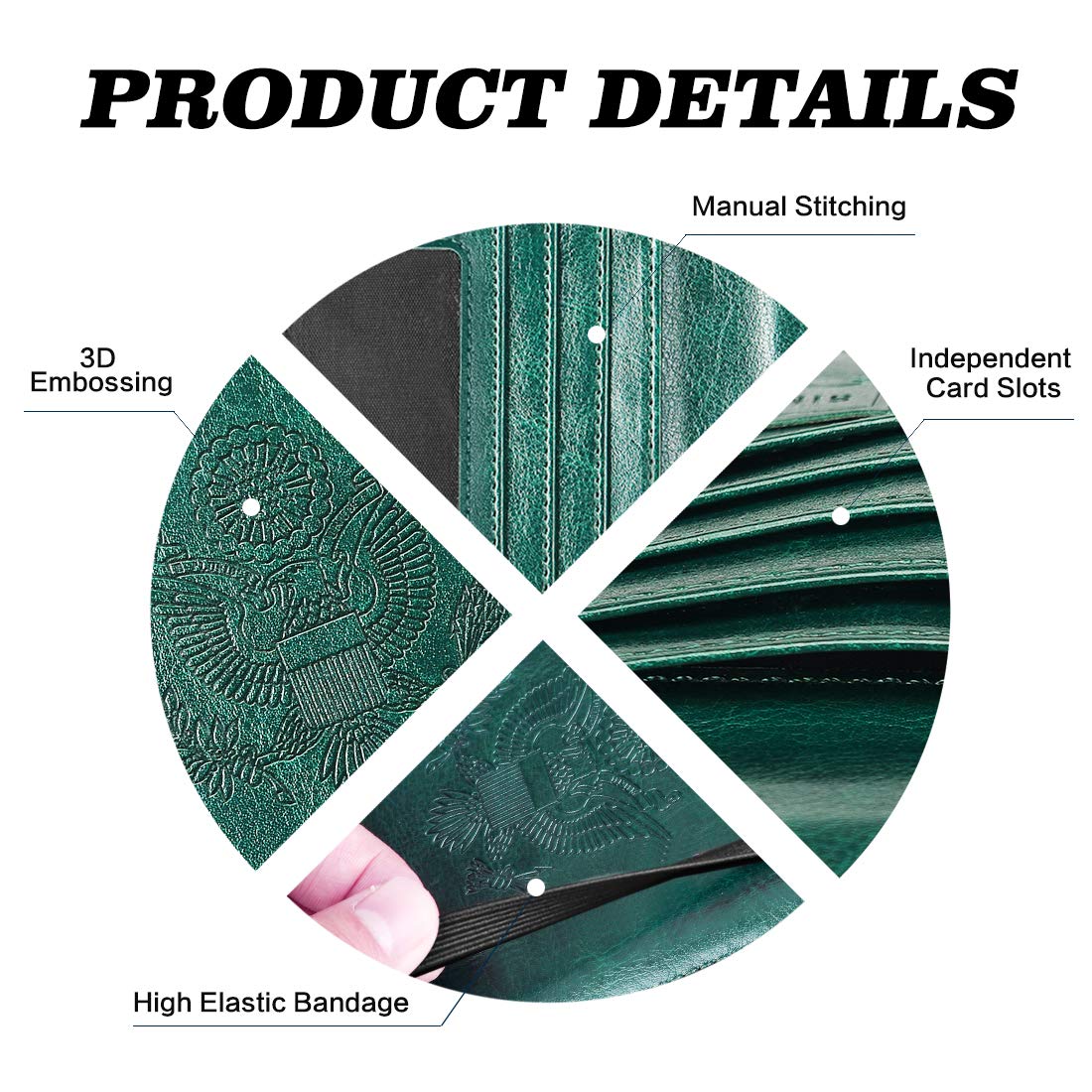 HerriaT Leather Passport Holder Cover Case RFID Blocking Travel Wallets Card Case for Women Men(Blackish green)