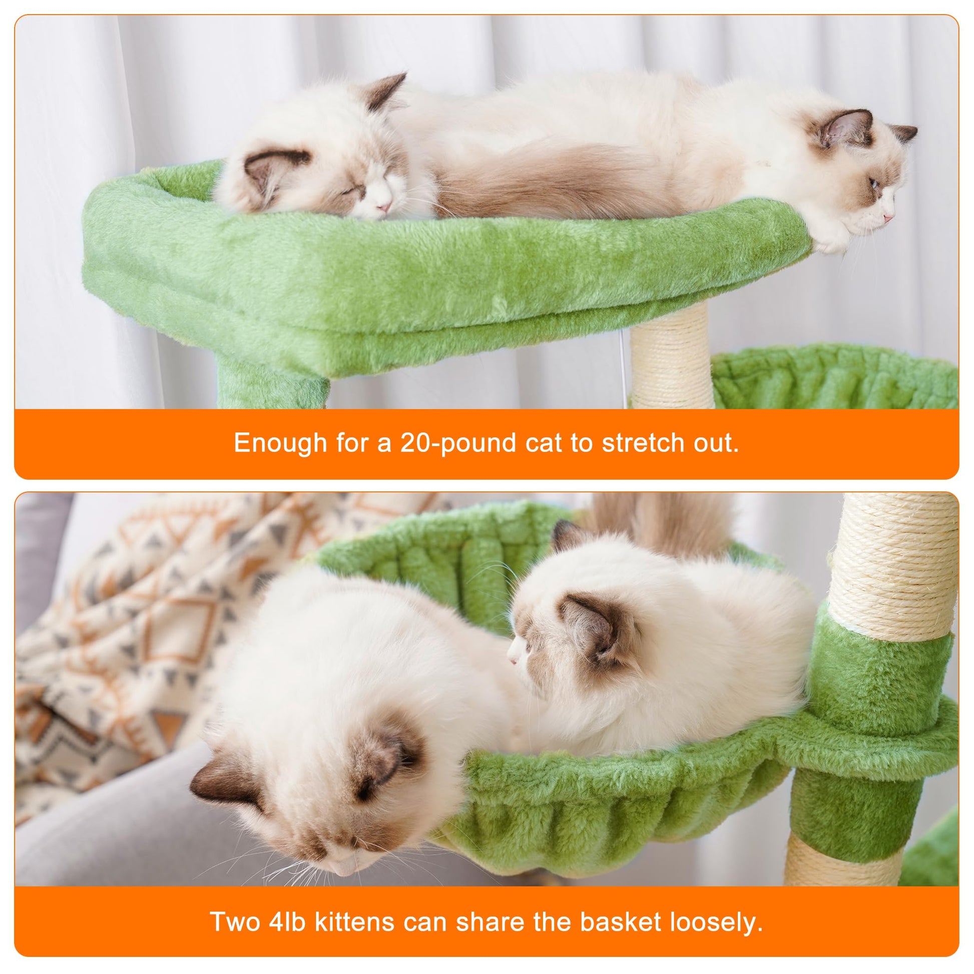 • [68" Tall, Multifunctional Design] Step-like jump multi-layer structure design of cat furniture, convenient for cat's scratching, climbing, sleeping, and exercising; The big cave, basket and hammock offer private space for catnap or hiding; Hammock to lounge and enjoy the leisure time