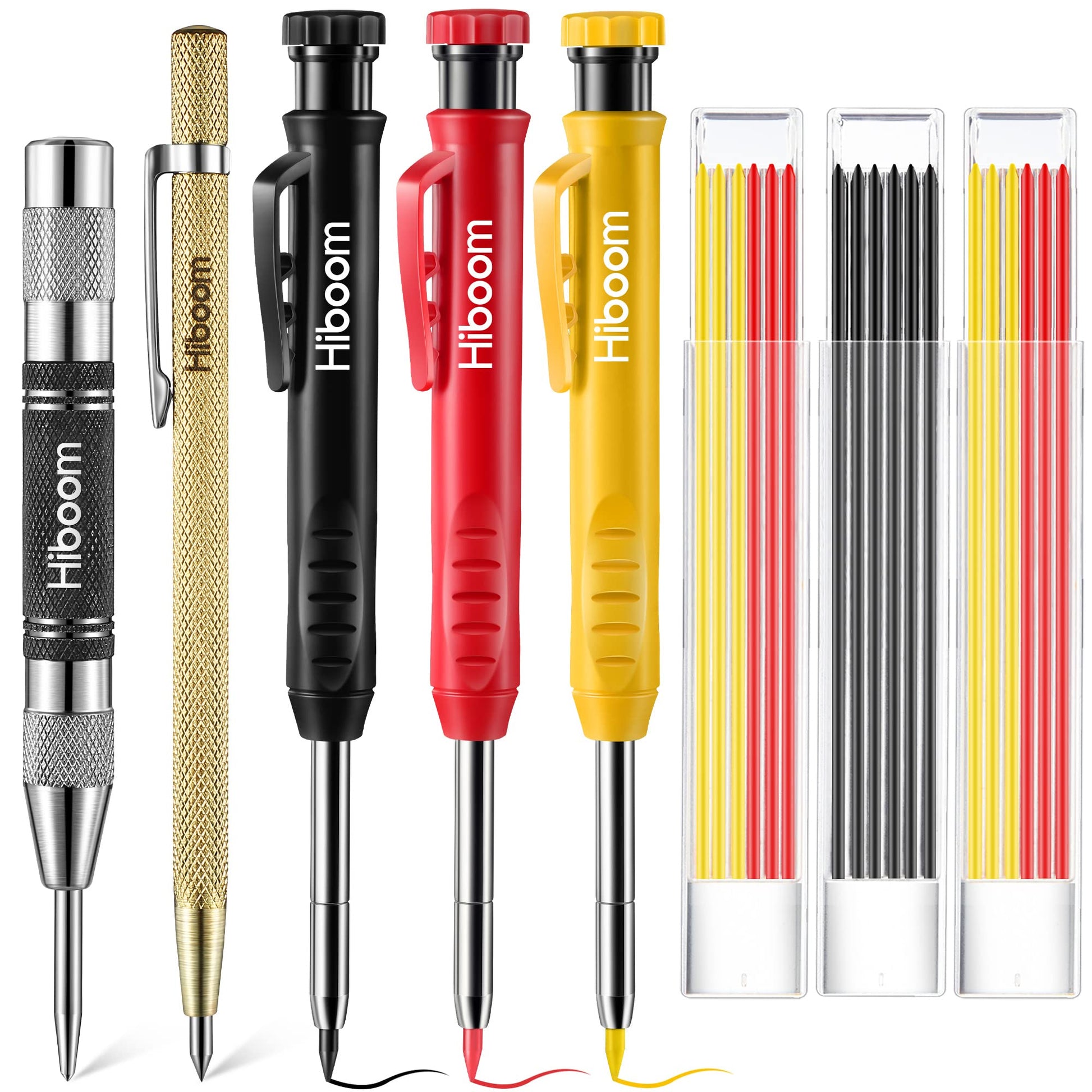 Hiboom Mechanical Carpenter Pencils with Solid Deep Hole Woodworking Pencils with Built in Sharpener & Refills, Automatic Center Punch, Carbide Scribers Tool Set for Architect Construction