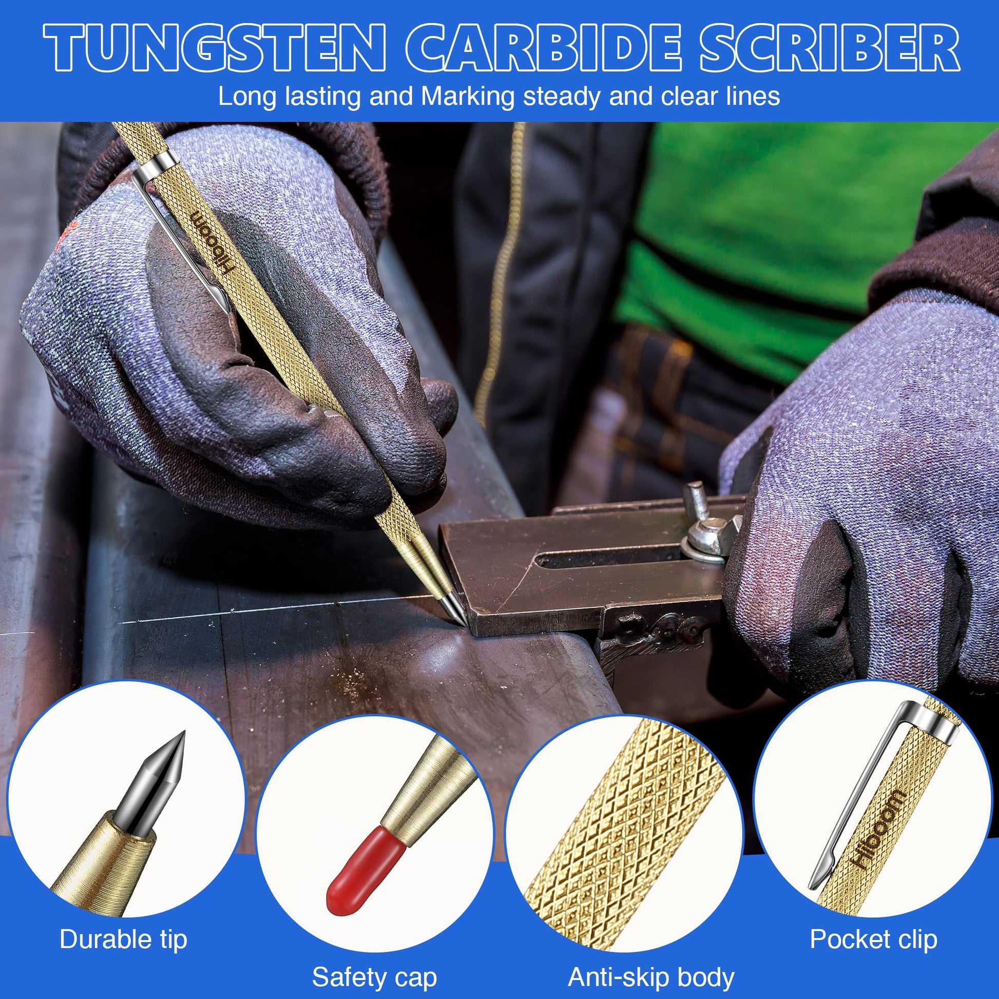 • Precise Metal Carbide Scribe: this etching engraving pen has a reliable tungsten carbide tip and knurled aluminum body, providing more control and comfort; The metal scribe comes with a protective vinyl cap over the scribe tip while not using, to prevent the tip from damaging other things