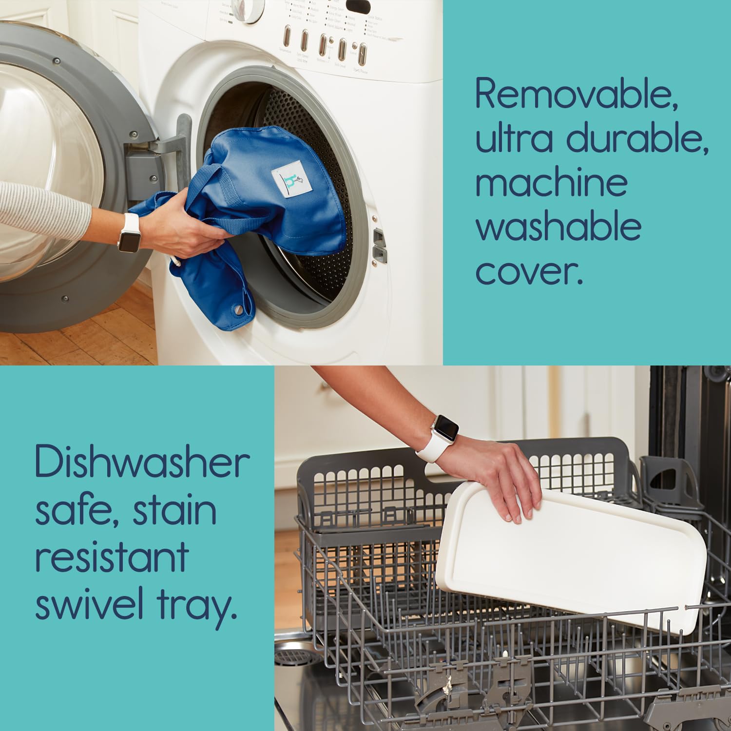 • MACHINE WASHABLE COVER | We all know that babies are messy eaters! Our portable booster seat is designed to effortlessly wipe clean, allowing more quality time with your precious tot. To assist with the inevitable mess, the fabric cover slides off the frame for machine washing - a must have for sanitizing and spaghetti stain removal.
