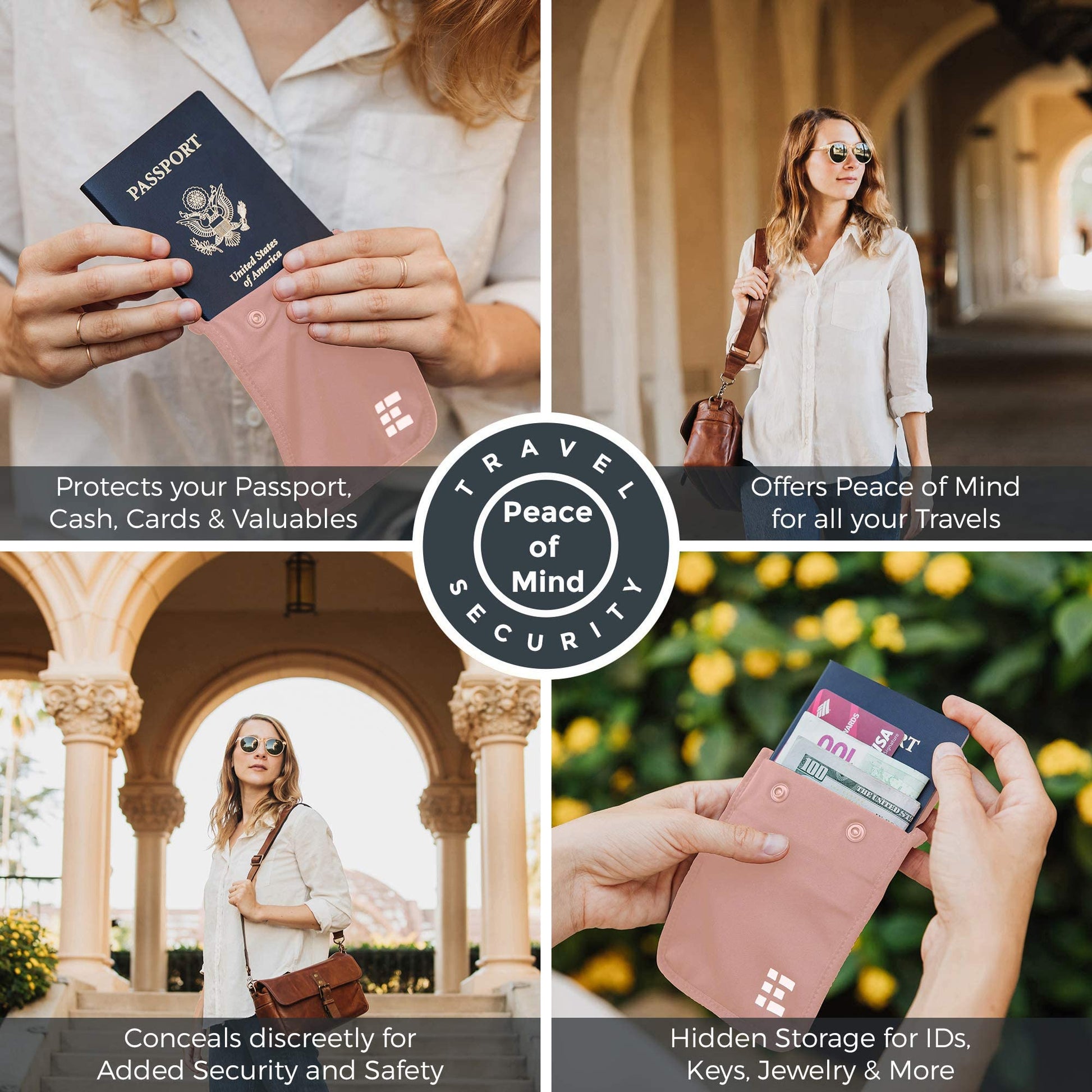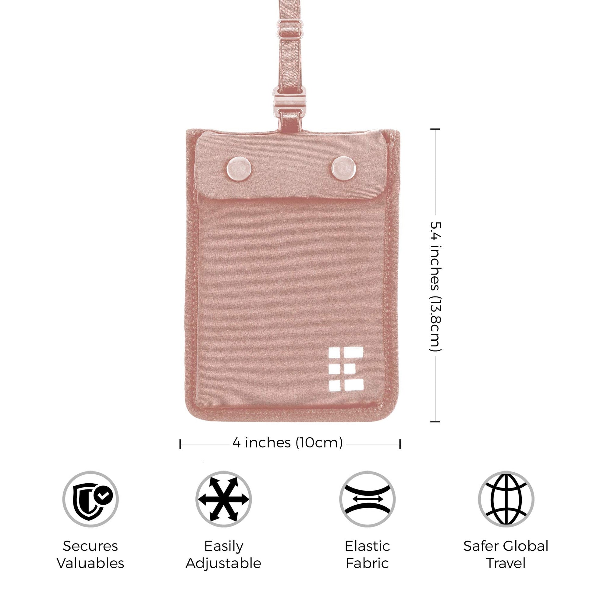 Hidden Bra Wallet - Travel Pouch and Secret Pocket for Passport, Money, Credit Cards - Undercover Stash for All Bra Sizes - Secure, Comfortable, Machine Washable - Pink