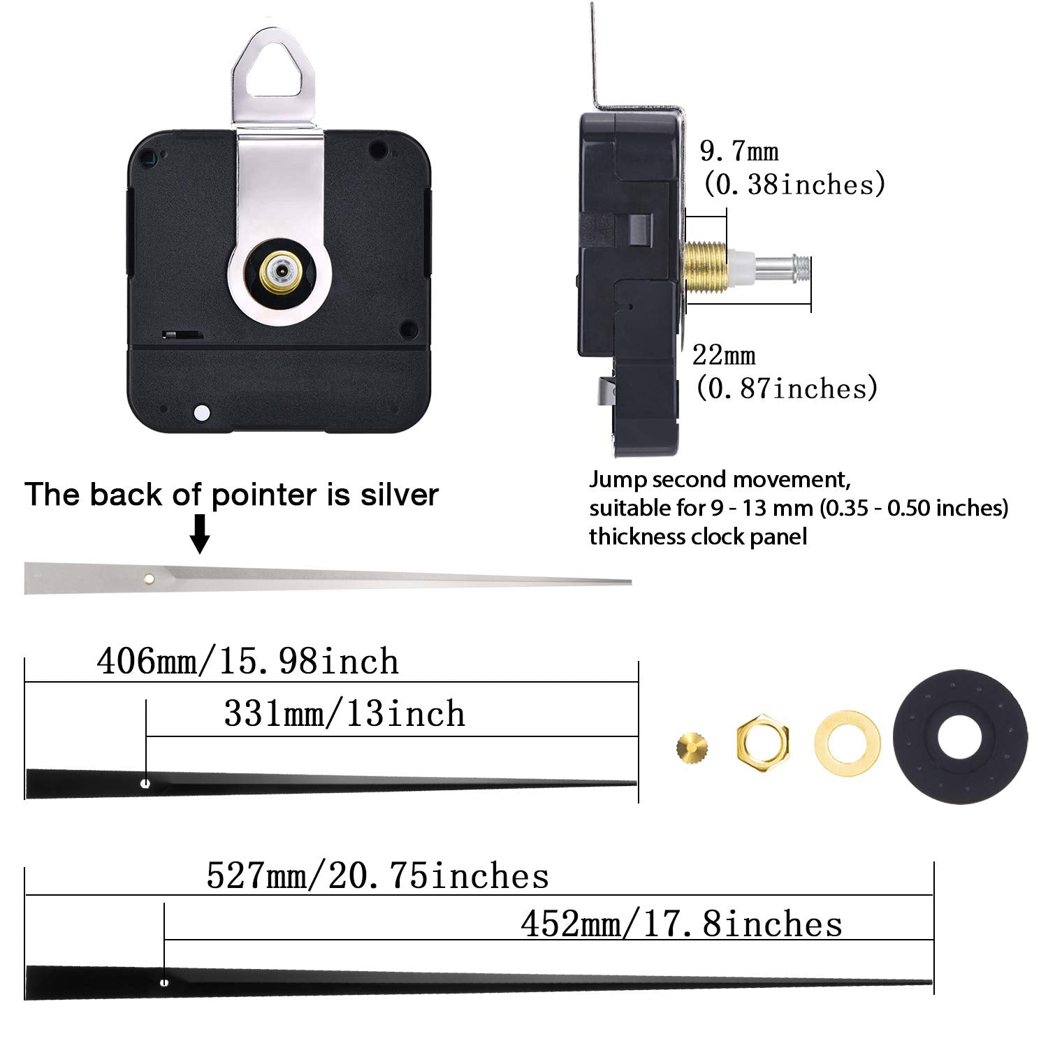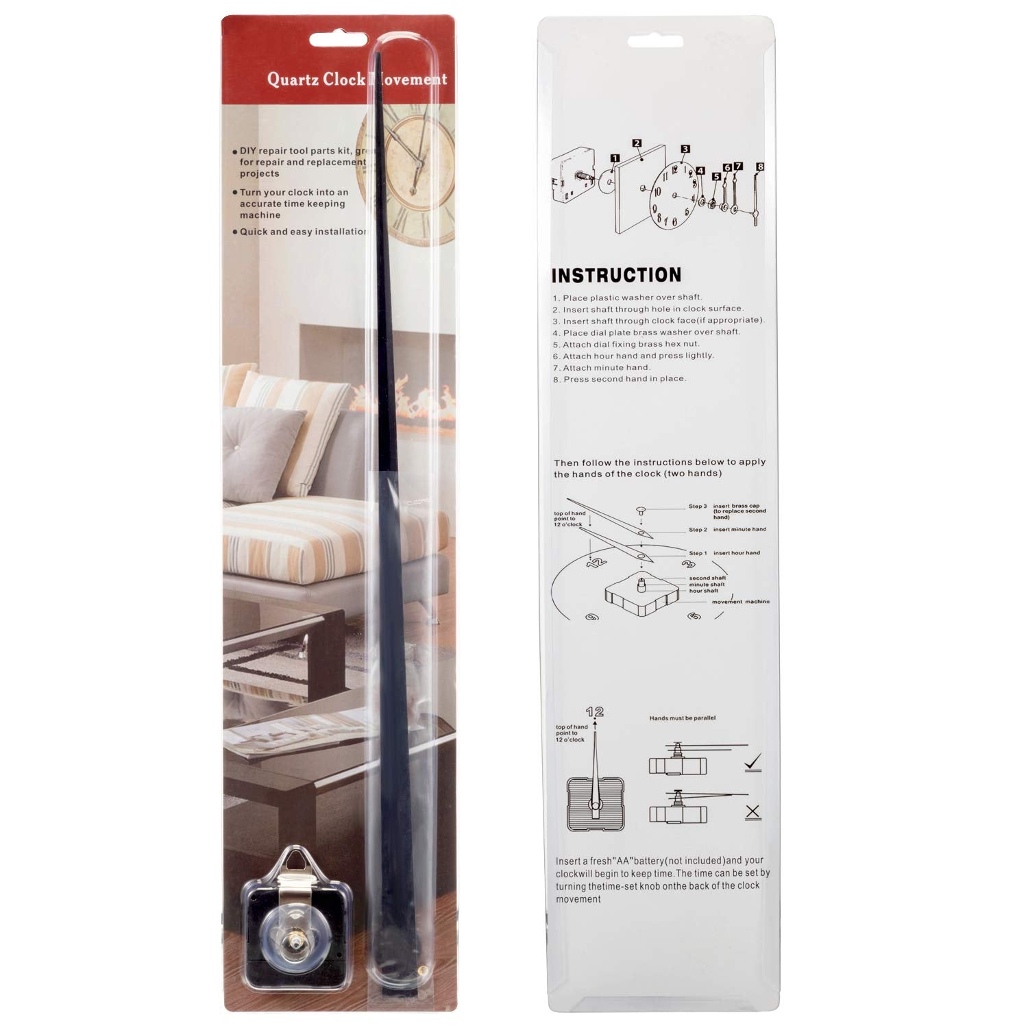 High Torque Clock Movement Mechanism with 17.8 Inch Long Clock Hands (Black)