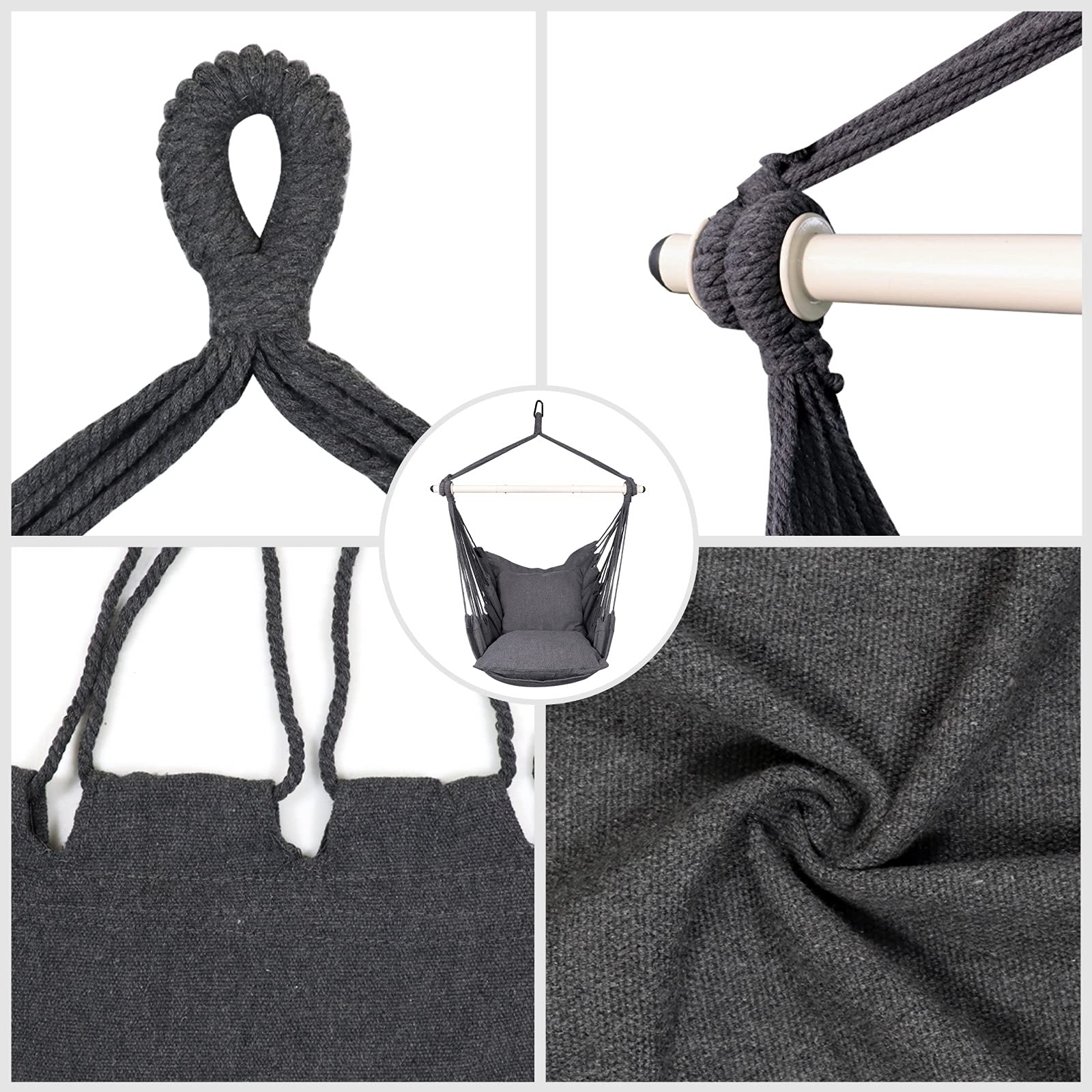• ▶ Includes 1 Hammock Chair Swing(Grey), 2 Seat Cushions, 1 Vacuum Storage Bag and 1 Carabiner; Hanging hardware is not included.