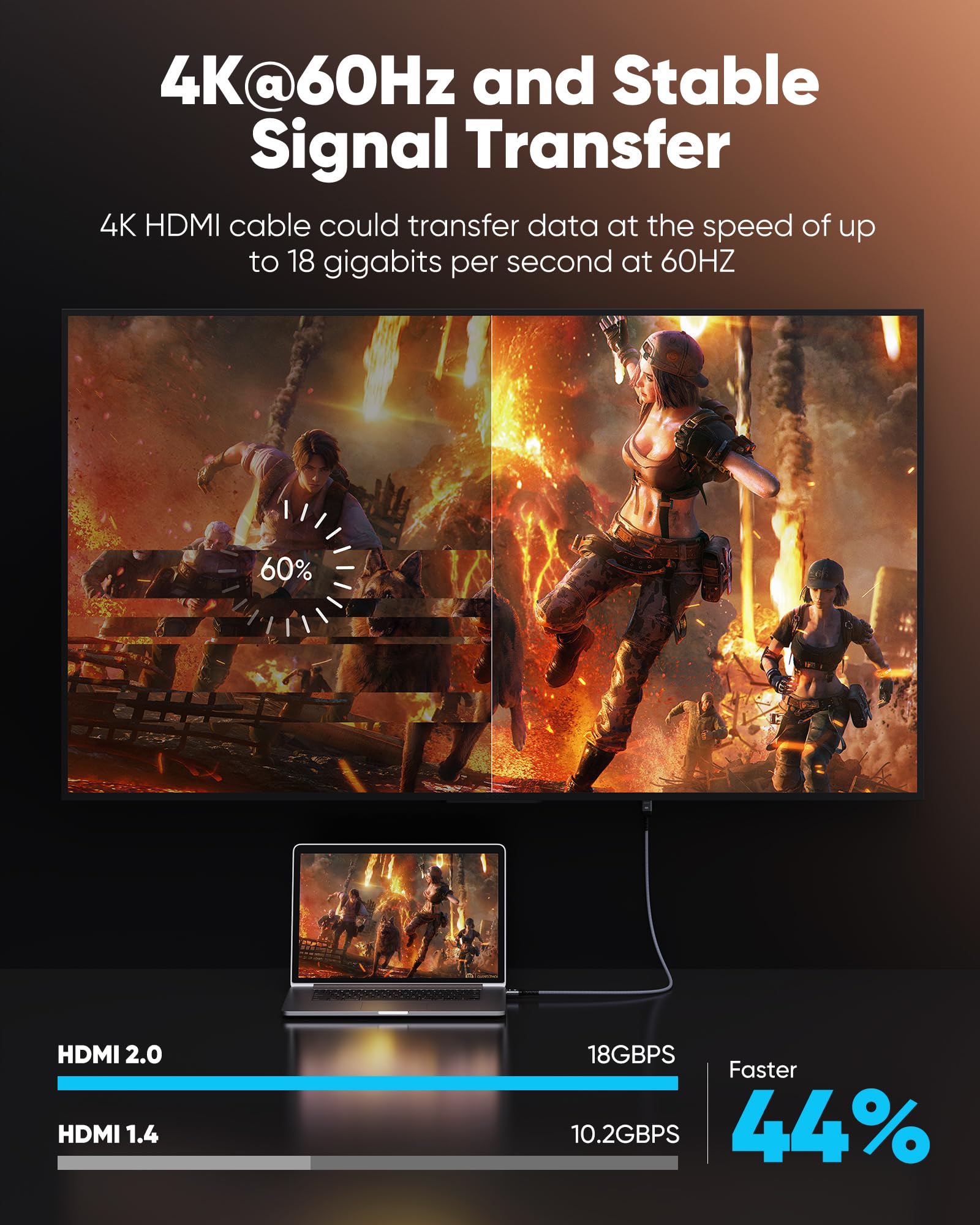 • 4k HD HDMI Cable: Innovative 4K HDMI Cable,built with gold-plated connectors to ensure high-speed and flawless signal transmission,4K*2K Ultra HD technology with resolution up to 3840 x 2160 @ 60 Hz for enjoying full HD crystal-clear TV sound quality.