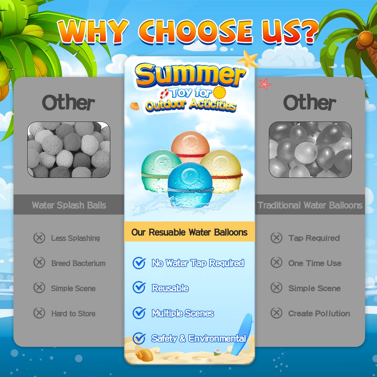 Hiliop 16PCS Reusable Silicone Refillable Water Balloons for Kids & Adults, Self-Sealing with Magnetic & Mesh Bag
