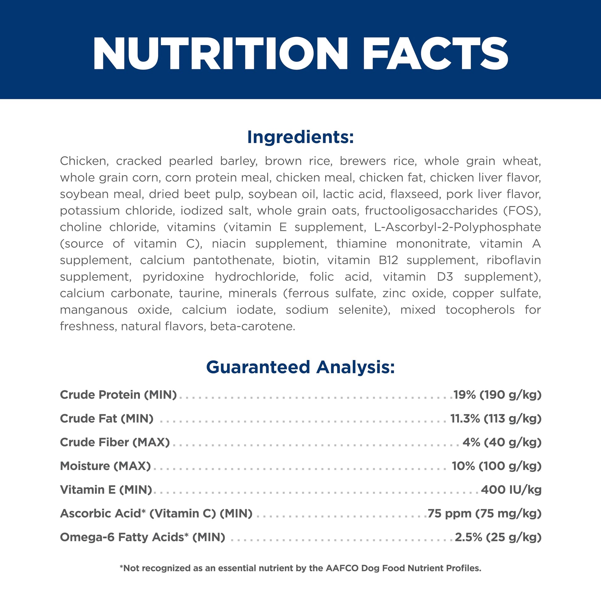 Details: Little dogs can have a big appetite, so treat your small-breed dog to Hill's Science Diet Small Bites Adult dry dog food. Packed with omega-6s & Vitamin E to give your canine a beautiful skin & coat, this premium adult dog food also provides high-quality protein to help your full grown dog maintain lean muscle. The small kibble is perfect for small and toy breeds, and since adult dogs need a strong gut, natural fibers help promote healthy digestive. This adult dog food made with natural ingredients is specially formulated with decades of cutting-edge research to be a great-tasting meal your adult dog can truly enjoy. There’s more to love with the new look of Science Diet. Some of our products also have new names, new kibble shapes & new formulas.