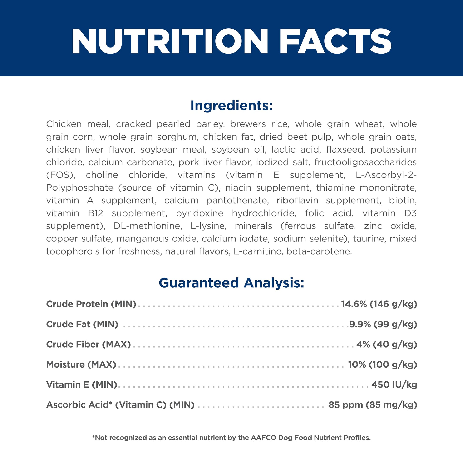 Hill’s uses only high-quality ingredients including real chicken, lamb or salmon protein. Hill’s dry pet foods have quality protein as the first ingredient and provide clinically proven antioxidant benefits. Plus, they’re made with natural ingredients (plus vitamins, minerals & amino acids) and never contain artificial colors, flavors, preservatives or chicken by-product meal.