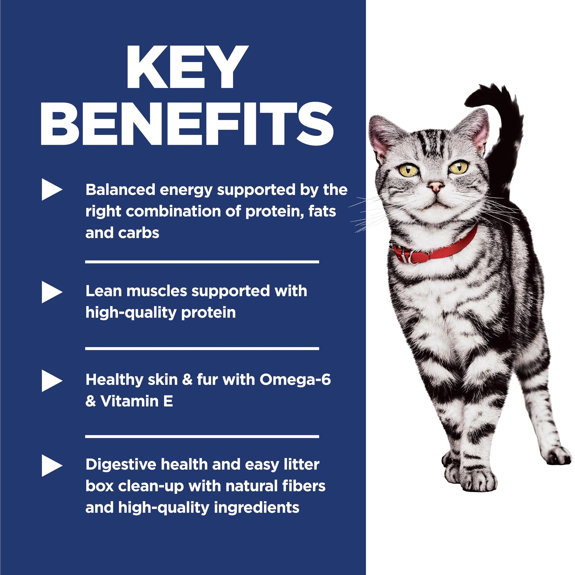 Details: During your cat's adult years, you want to feed nutrition that supports everyday health and digestive. Hill's Science Diet Indoor Adult dry cat food is specially formulated to fuel the energy needs of cats with an indoor lifestyle during the prime of their life. Made for grown cats, this pet food made with natural ingredients uses DHA from fish oil to support brain health and eye development. Balanced minerals promote strong teeth and bones, while natural fibers promote healthy digestive for young cats, and easier litter box clean-up for you. There’s more to love with the new look of Science Diet. Some of our products also have new names, new kibble shapes & new formulas.