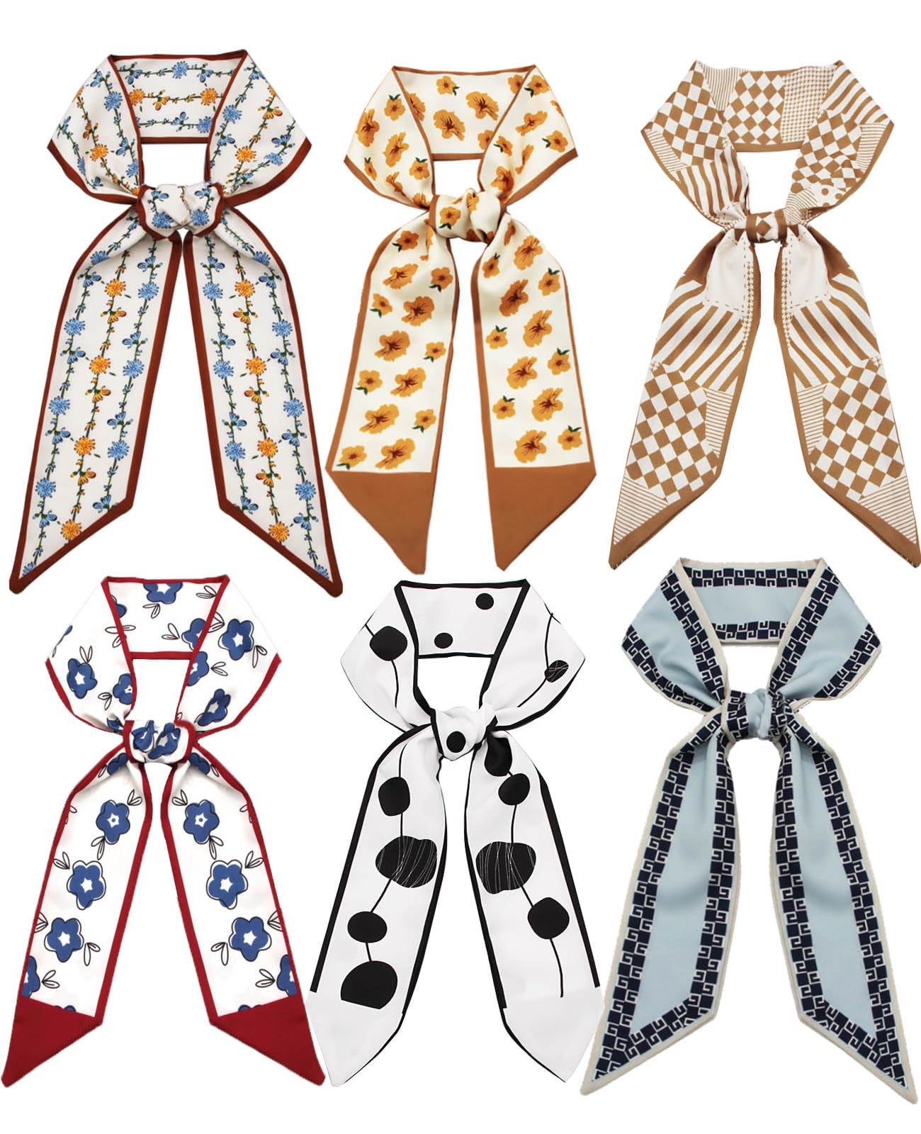 • 【size information】It measures 37.8(96cm) inches long and 2.6(6.5) inches wide,6 packs of different styles of scarves in just the right size to be used as handbag scarves, headband scarves, or women's scarf belts