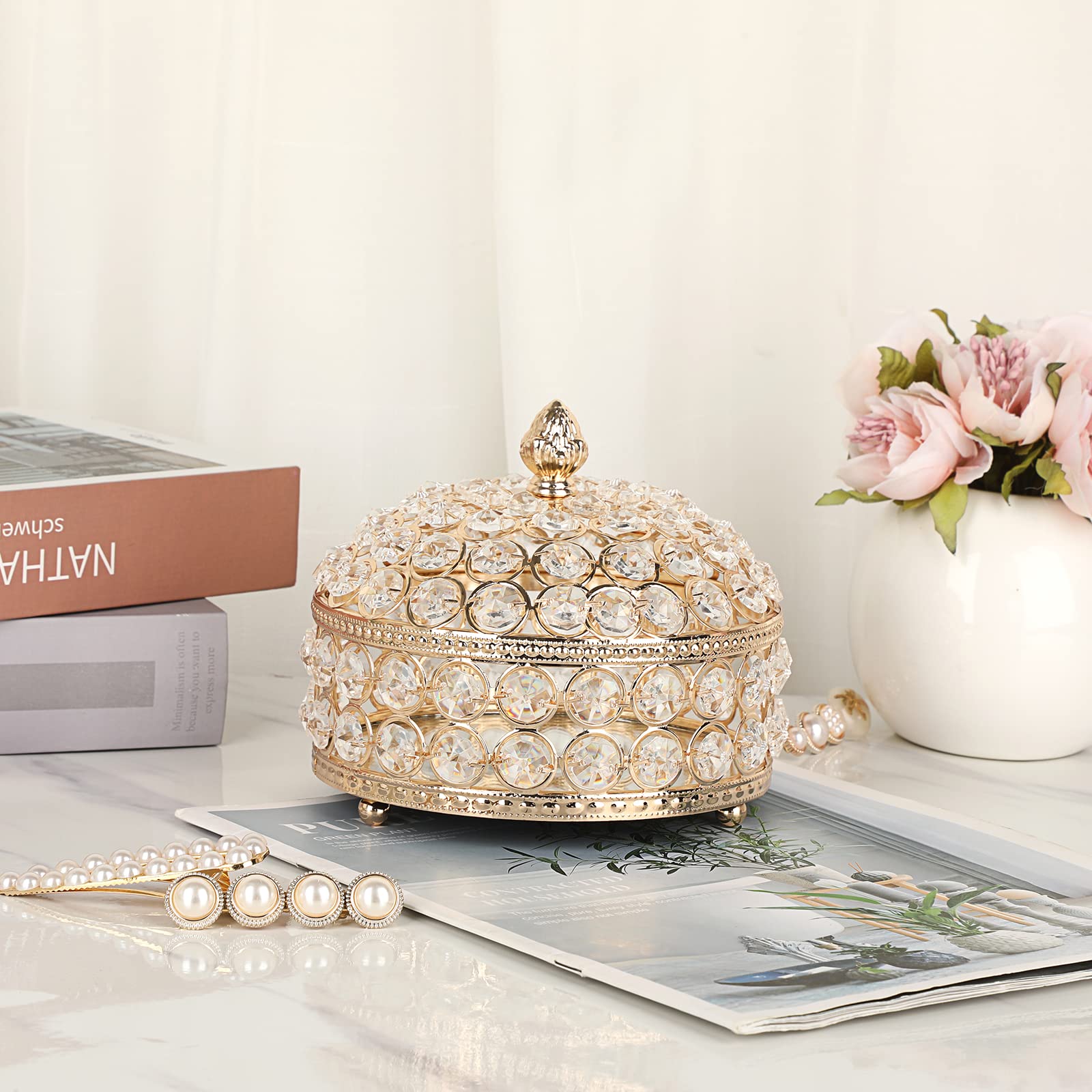 • Product Info- Diameter: 5.7inches ; Height: 5.1 inches ; Package includes:1 x Crystal Jewelry Box (Jewelry are not included)