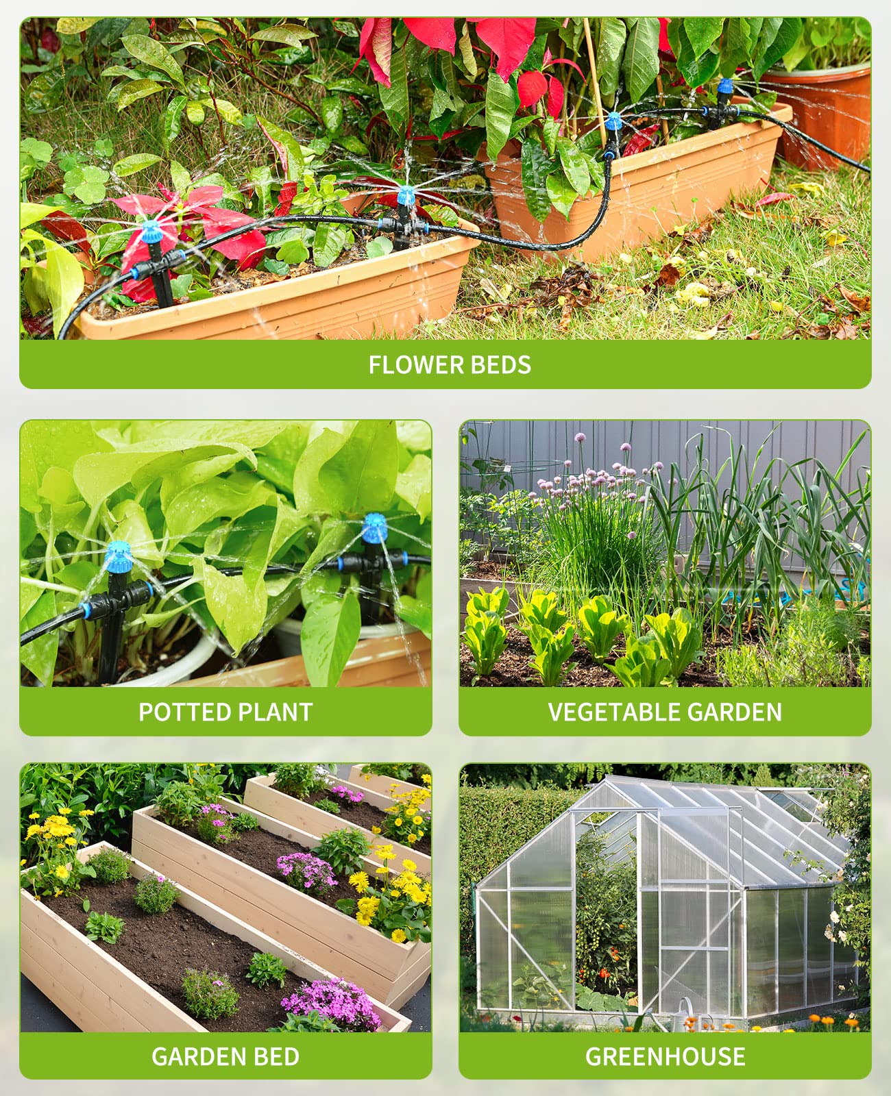 • Easy to Assemble and Use: New quick connector and plug-and-play irrigation pipes ensure a secure connection, preventing easy disconnection and leaks. It only takes 10 minutes from installation to operation. With a detailed user manual
