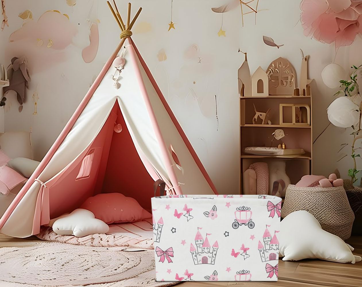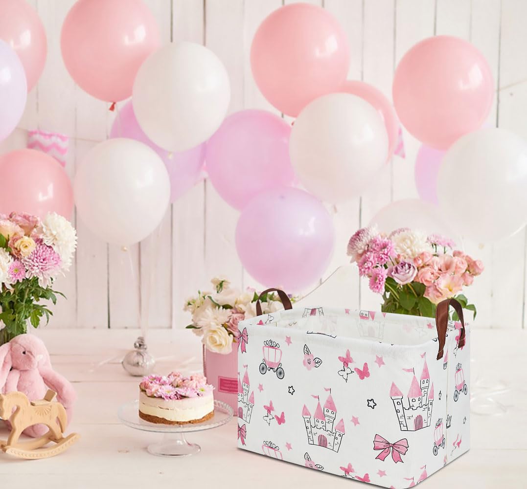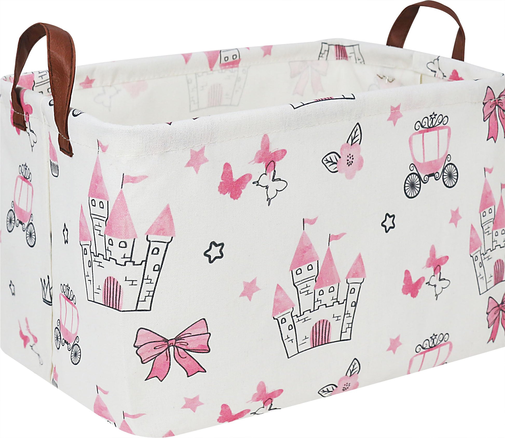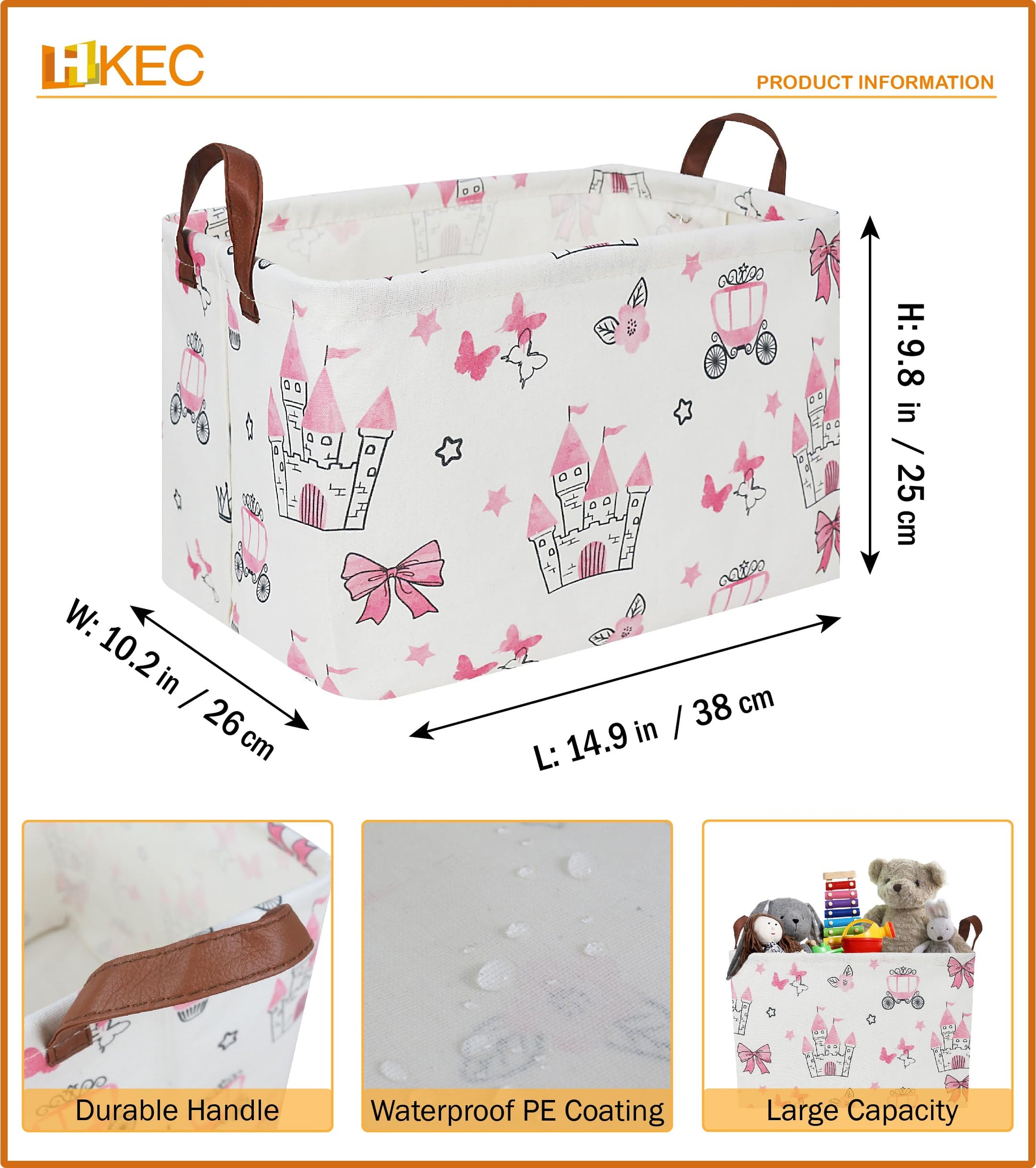 HKEC Rectangle Storage Basket with Handles,Collapsible Storage Bin,Books Box,Gift Basket(Pink Princess)