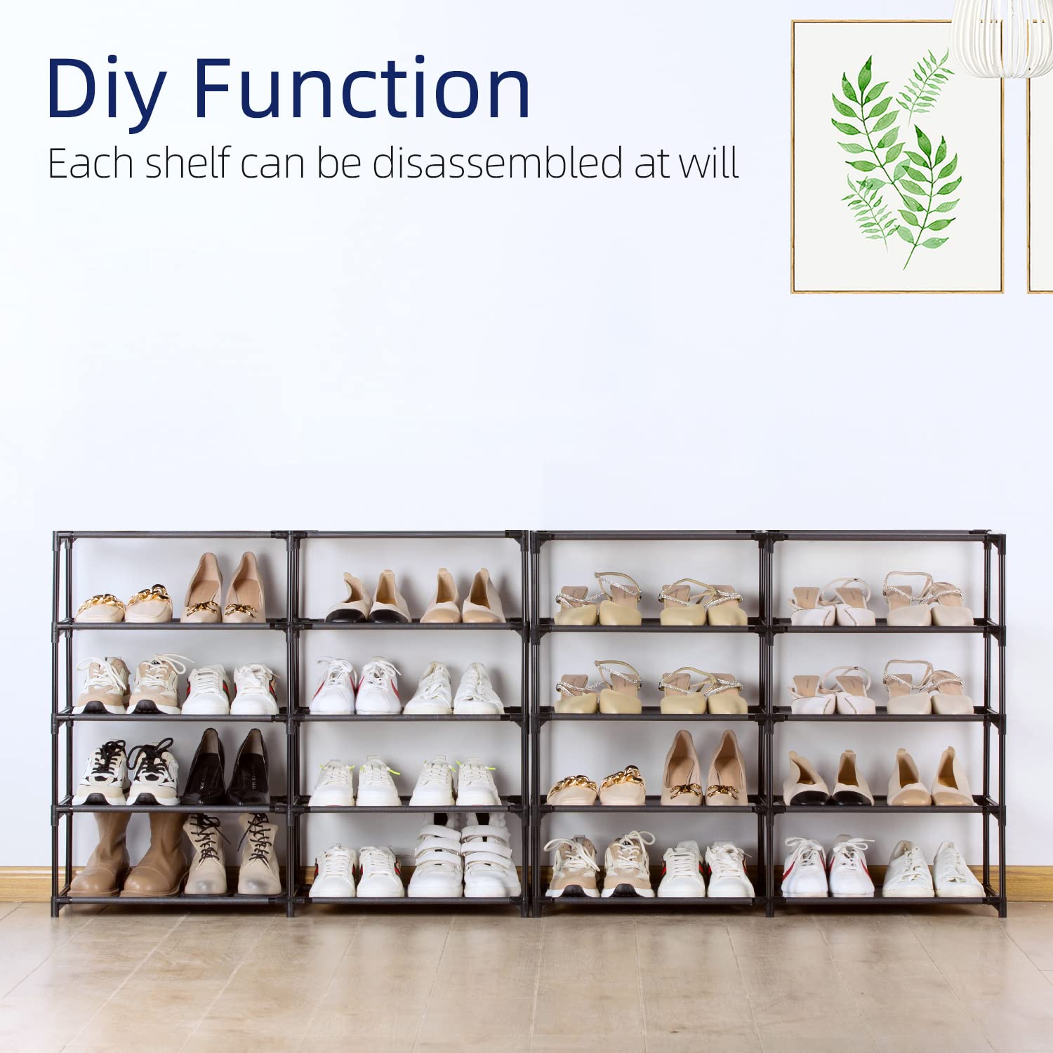 • 【Easy to Assemble】The shoe rack can be easily installed by one person. No tools required, just connect the plastic connectors to complete the installation. You can remove one layer to store boots, high heels or other larger accessories. This shoe organizer can split into 3-tier, 5-tier or narrow shoe racks to suit different rooms.