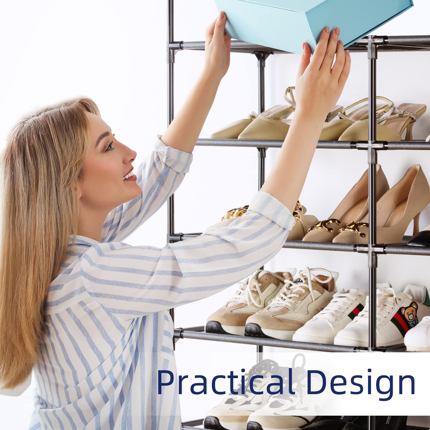 • 【10 Tier Tall Shoe Rack】The 10 tier shoe organizer can store 30 to 40 pairs of adult shoes. This shoe shelf is not only suitable for shoes, but also for bags, toys, towels, sundries, books, plants and small accessories.