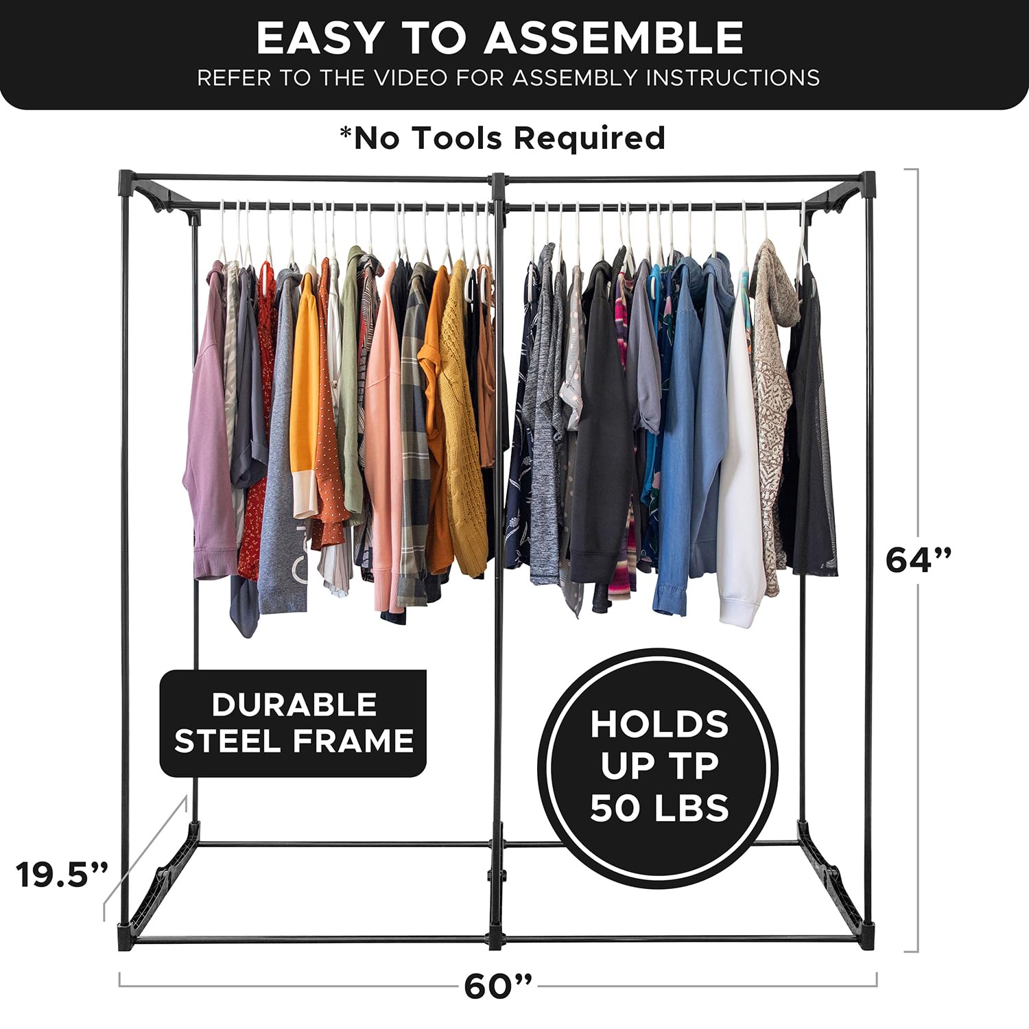• Compact Stylish Design: Measuring 64”H x 60”W x 19.5”D, this Portable Wardrobe Closet gives the perfect stylish addition to your home, yet is the perfect size to fit your needs.