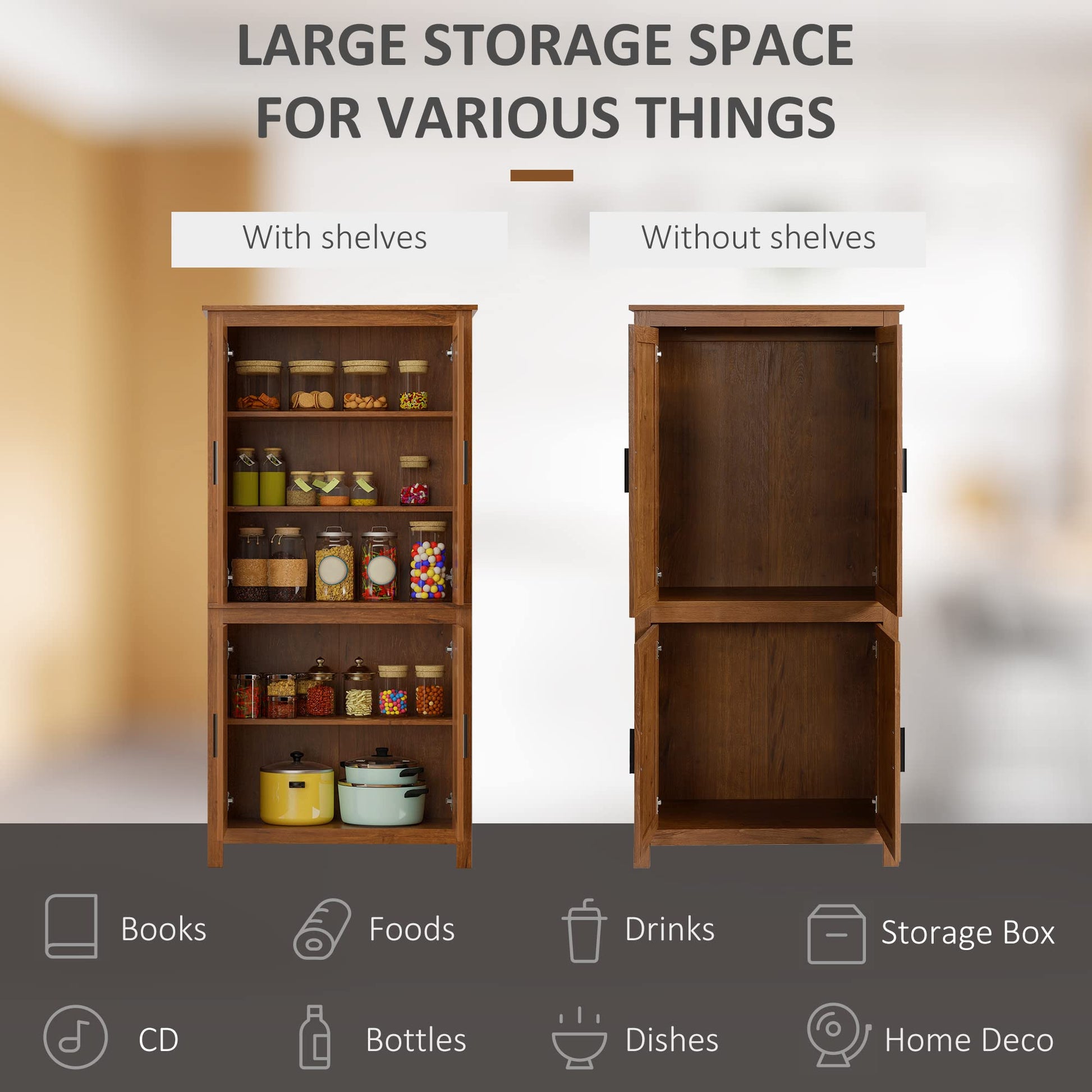 HOMCOM 64" Kitchen Pantry Cabinet, Freestanding Storage Cabinet with 4 Doors and 3 Adjustable Shelves for Dining Room, Oak