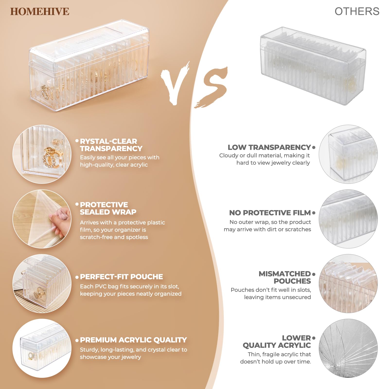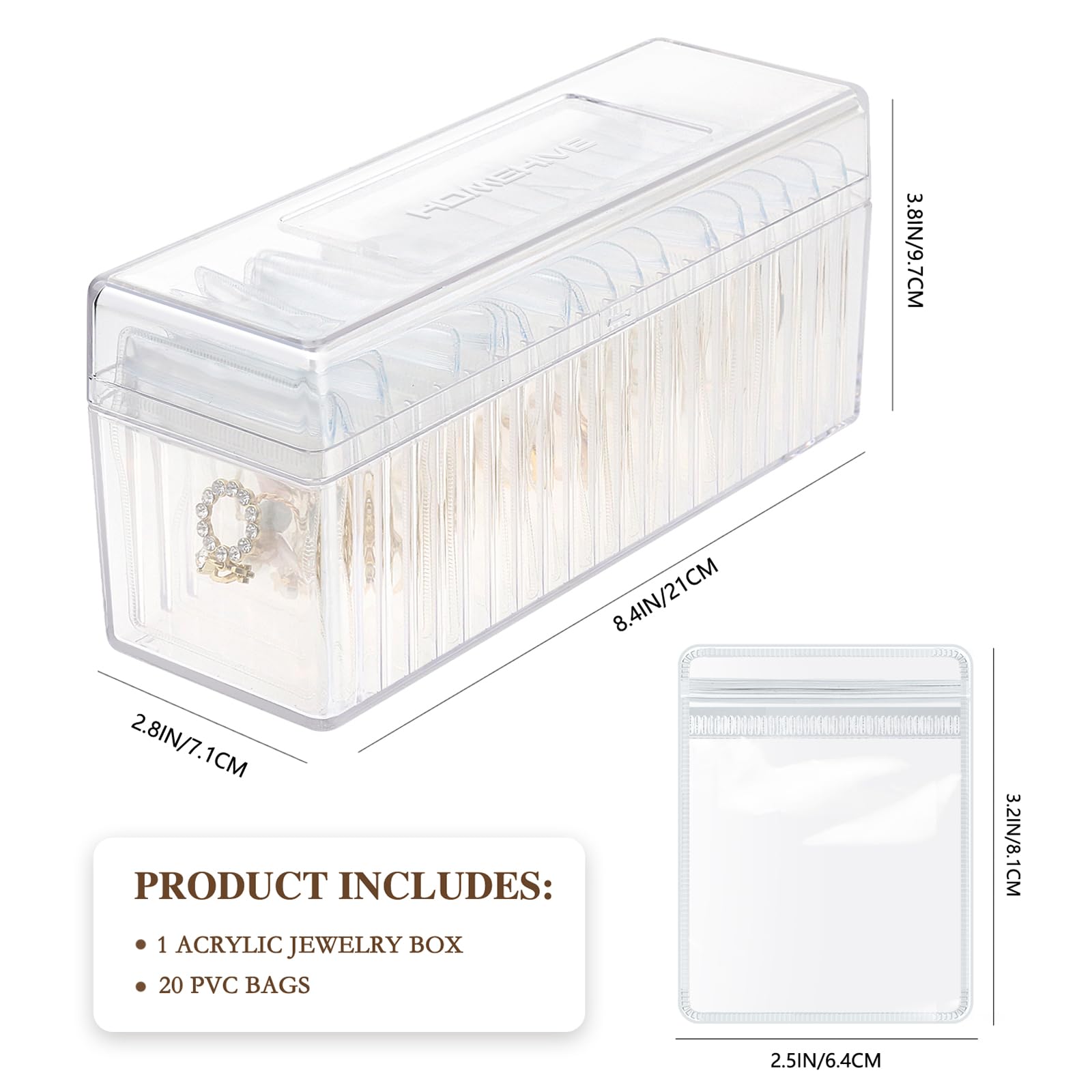 HOMEHIVE Acrylic Jewelry Box Organizer, Clear Jewelry Organizer and Storage with 20 Portable Anti Tarnish Jewelry bags, Travel Jewelry Case for Earrings/Rings/Necklaces Gifts for Women Girls, Clear