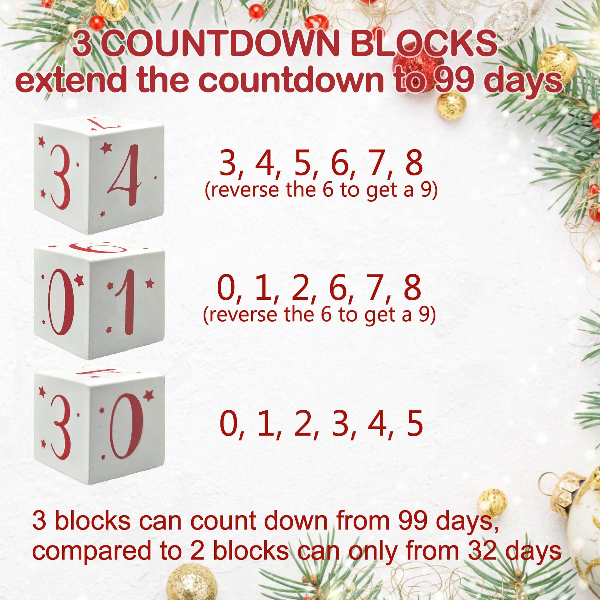 HOMirable Christmas Countdown Blocks Santa Sleigh Advent Calendar 99 Days Christmas Tree Decorations Wooden Farmhouse Rustic Sign Xmas Party Holiday Décor for Home Living Room, Mantel, Tiered Tray