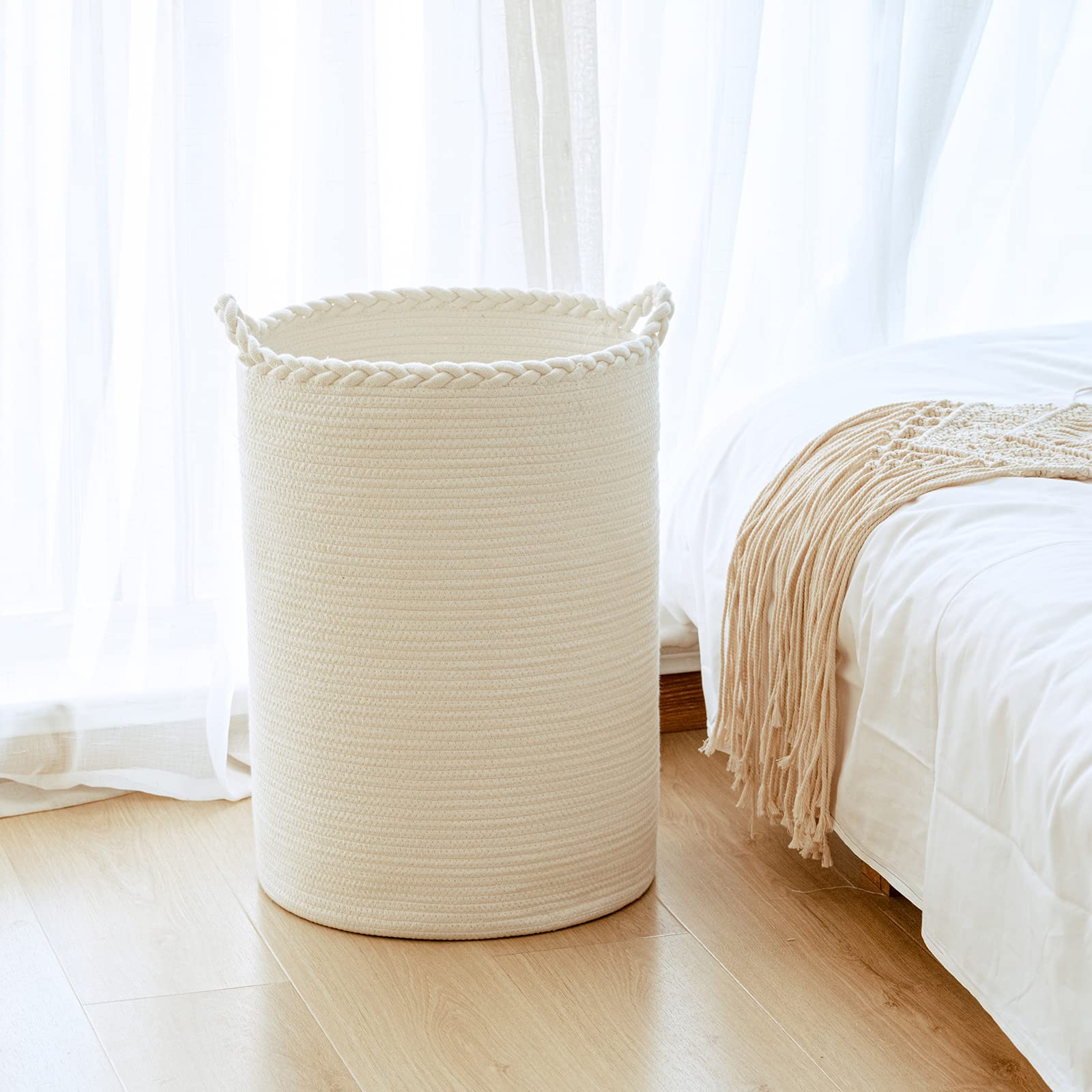 Homlikelan 72L Woven Laundry Hamper,Cotton Tall Wicker Laundry Basket for Blankets,Clothes,Pillows,Toys,Shoes Large Laundry Bin White
