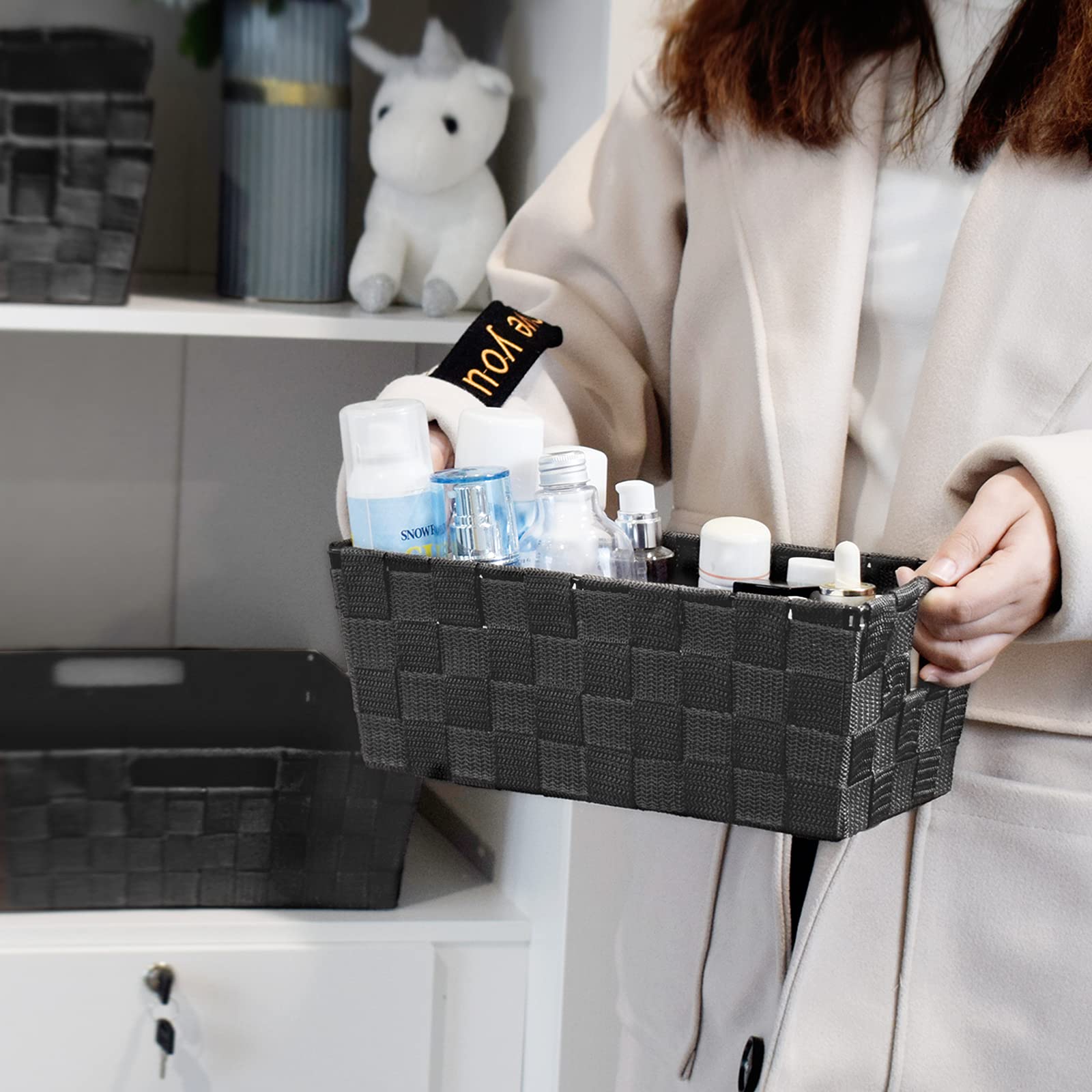 homyfort Woven Shelf Storage Tote Basket Bins Container, Storage Boxes Cube Organizer with Built-in Handles for Bedroom, Office, Closet, Clothes, Kids Room, Nursery 3pk(Grey)