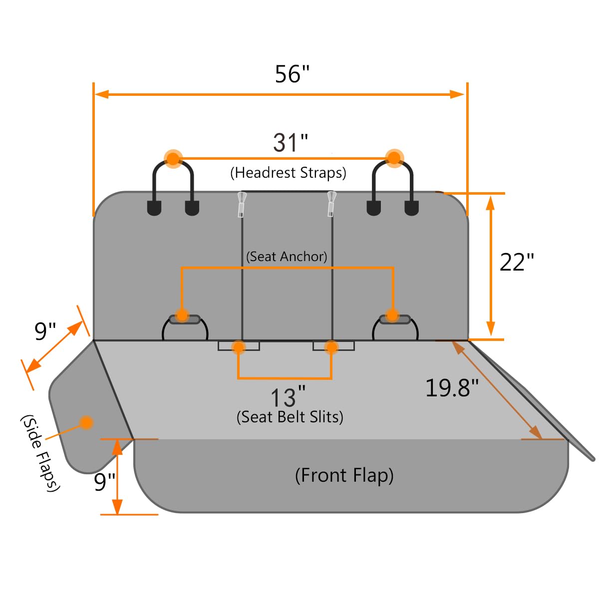 • 100% Waterproof Dog Seat Cover with Side Flap: prevent lingering stains, odors, and more. Our dog seat cover made by 600D oxford with PVC coating, it is 100% waterproof, keeps your car seat from any liquid, dirt, hair & fur. etc.