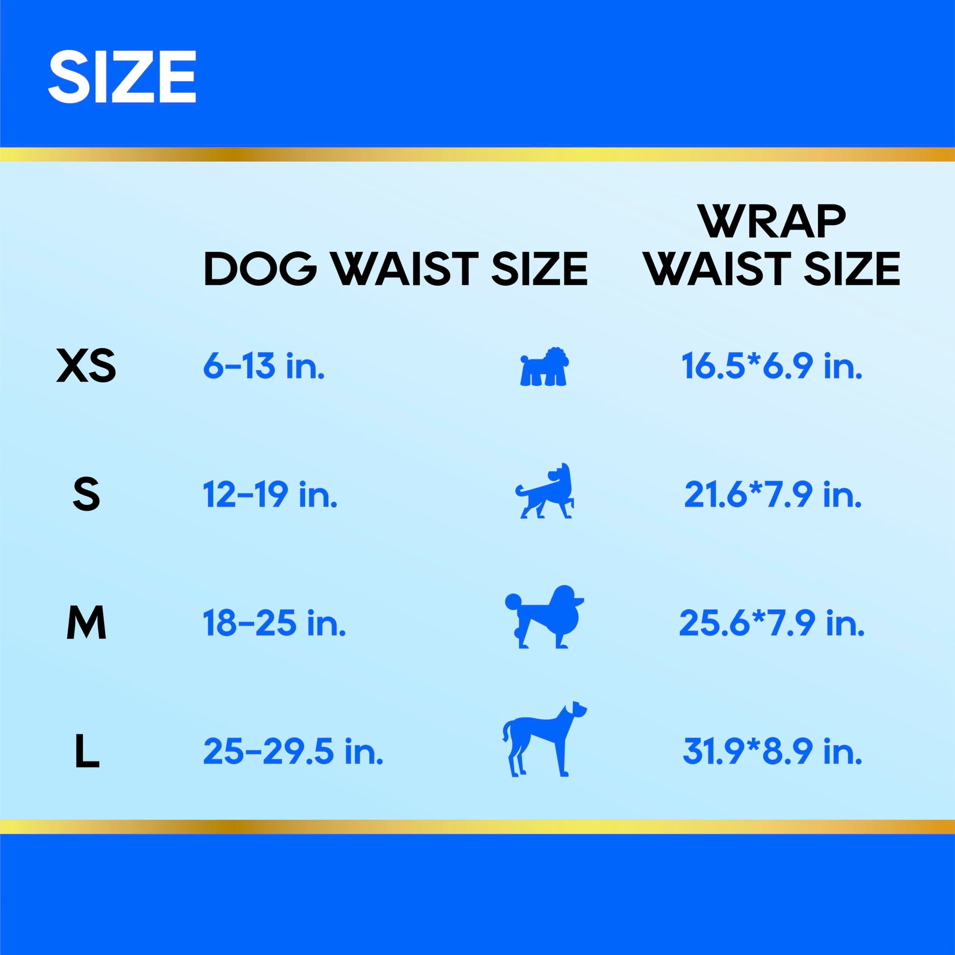 Details: WRAP IT UP- All-Absorb Disposable Male Wraps are designed to fit: -Large-sized male dogs with a 25 - 32 inch waist. -Medium-sized male dogs with a 18 - 25 inch waist. -Small-sized male dogs with a 12 - 18 inch waist. -Extra-Small sized male dogs with a 6 - 13 inch waist. These are guaranteed to keep your little buddy comfy and dry, while helping you maintain peace of mind. RELIEF FOR WHEN HE RELIEVES HIMSELF - All-Absorb Disposable Male Wraps provide much needed protection for male dogs with incontinence, excitable urination, or those who feel compelled to mark things that are clearly not his.