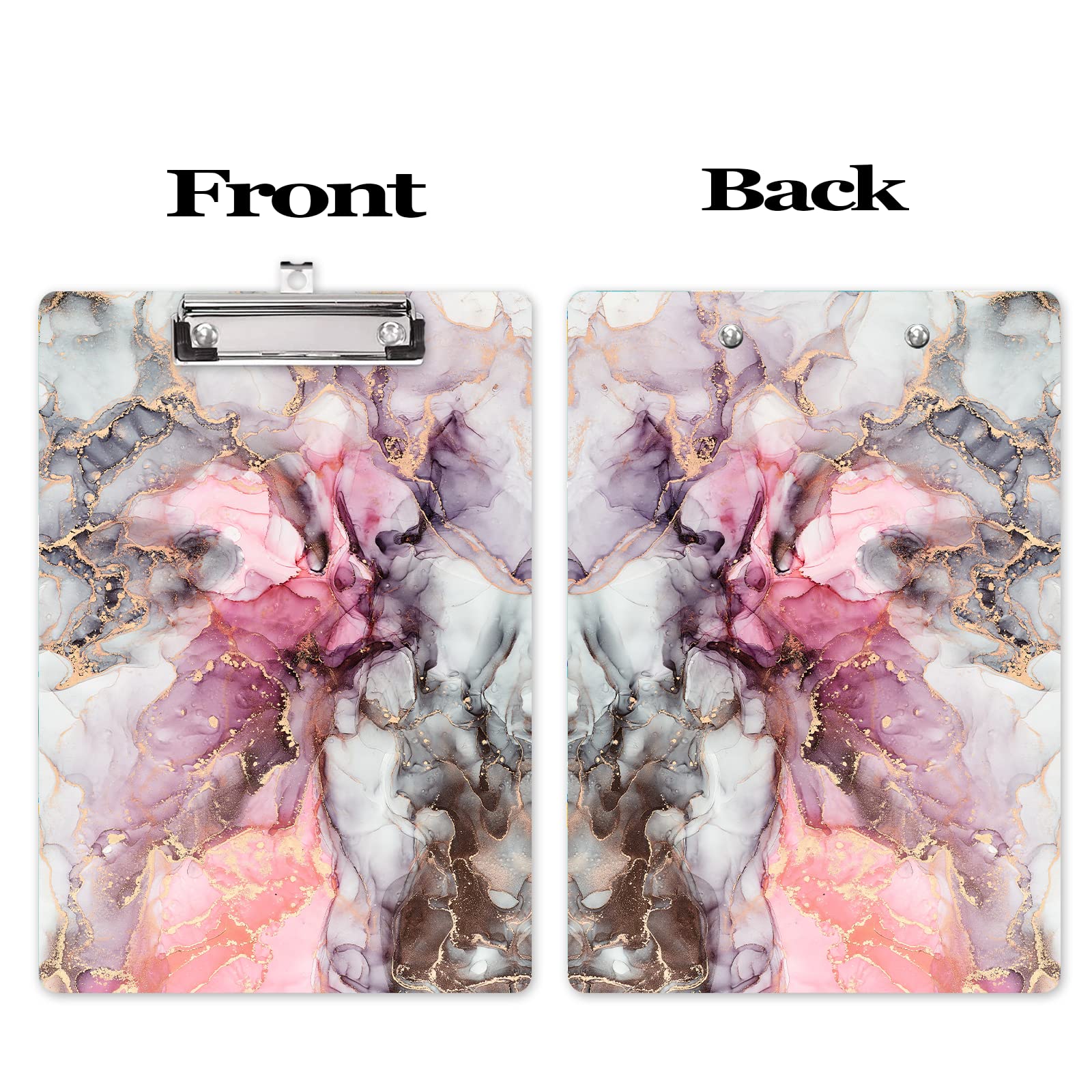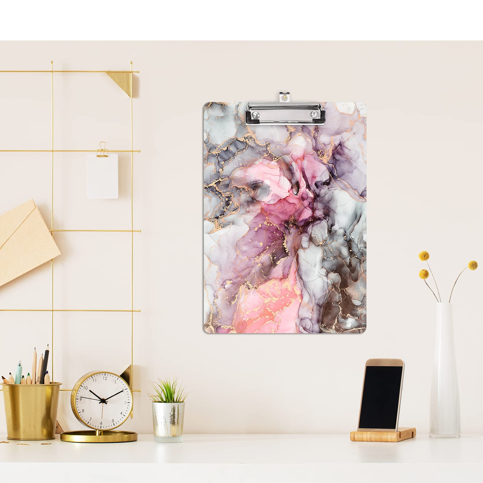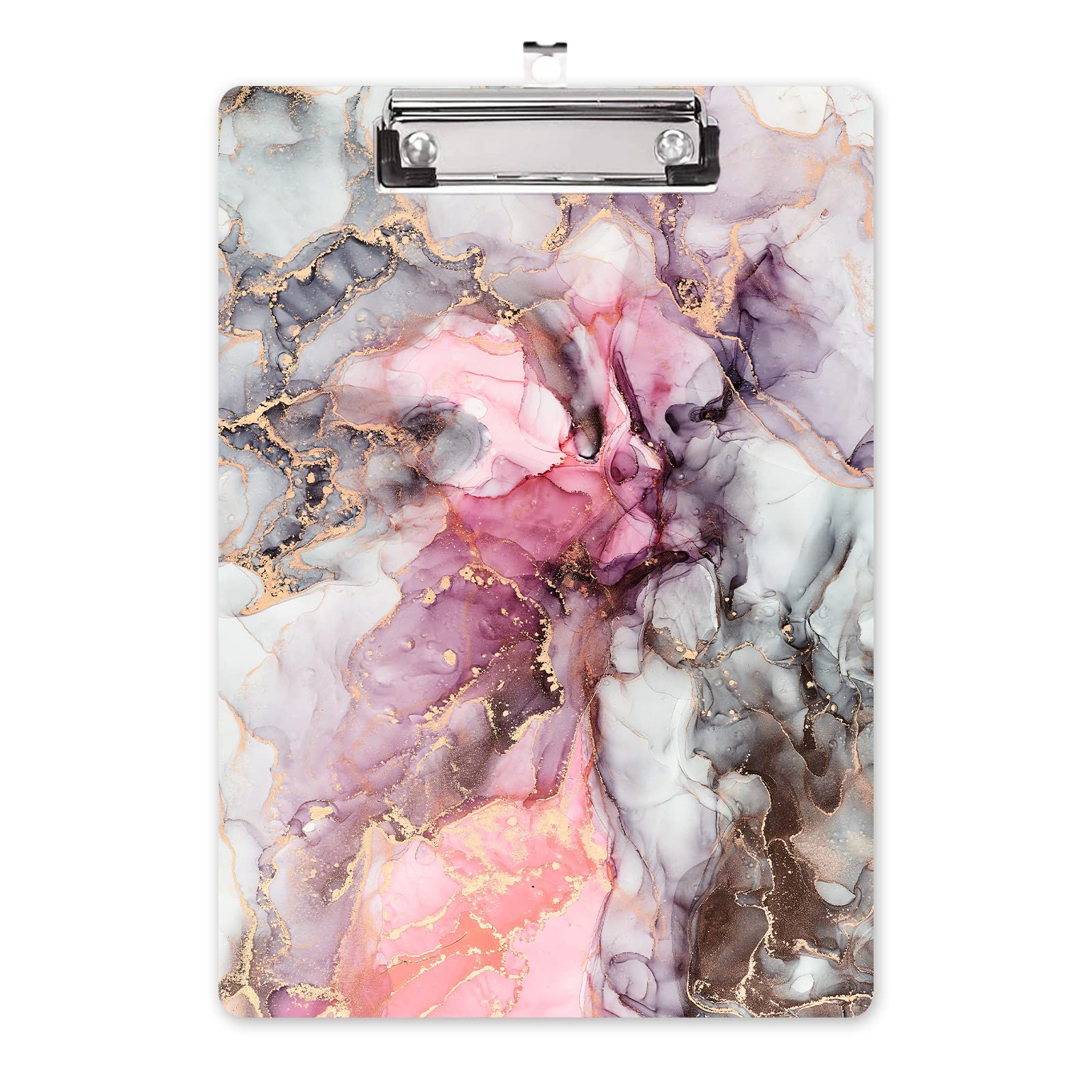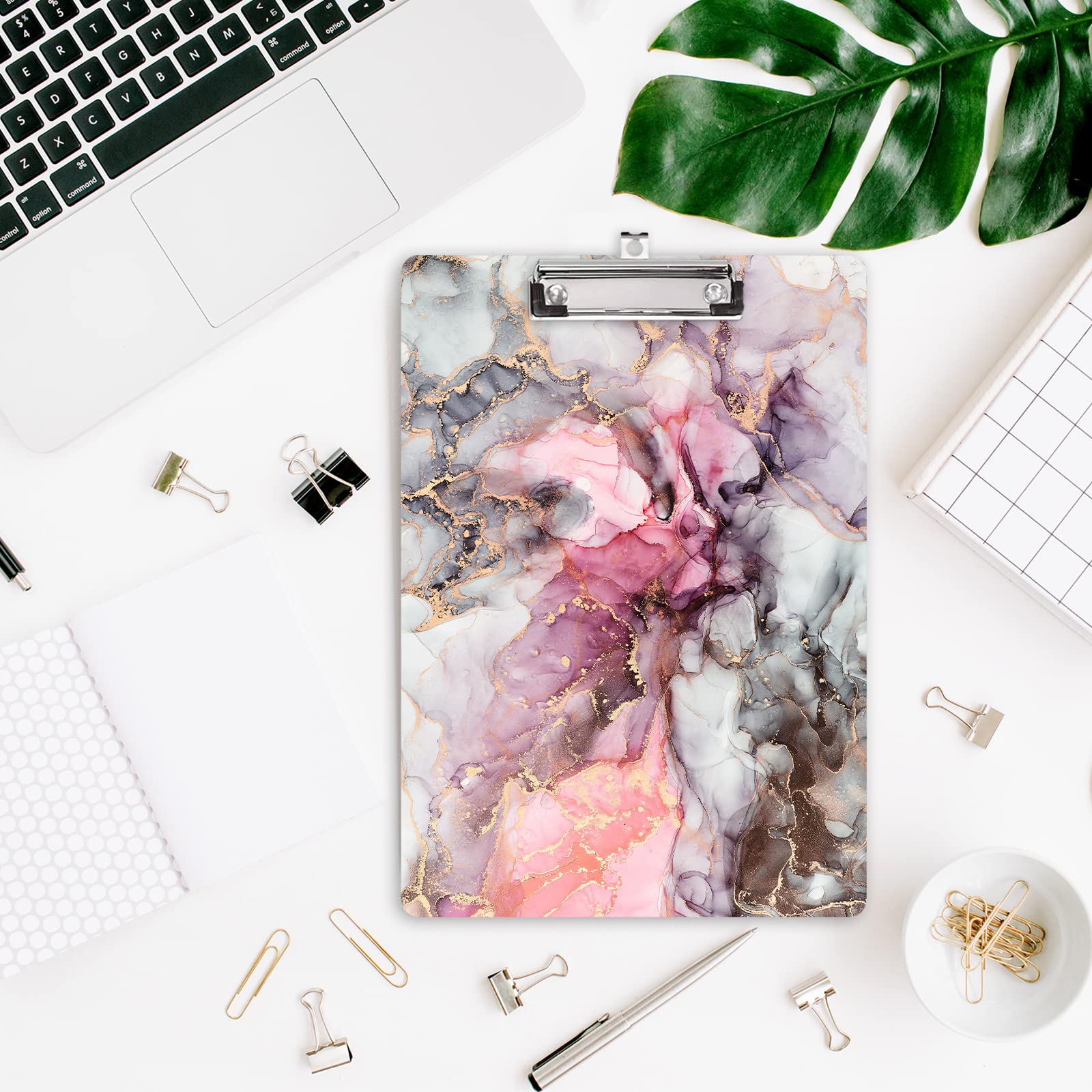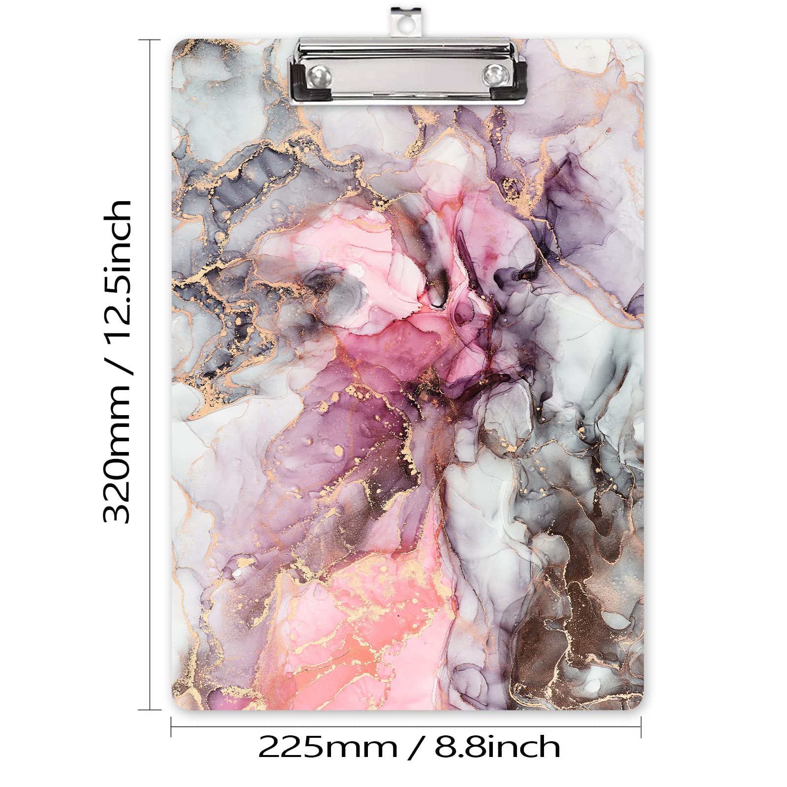 Hongri Wooden Clipboard, Fashion Design Clip Board for Classroom Students,Teacher, Women, Kids, Cute Custom Pattern, Standard Letter Size 9 x 12.5 in with Low Profile Metal Clip, Black Red Marble