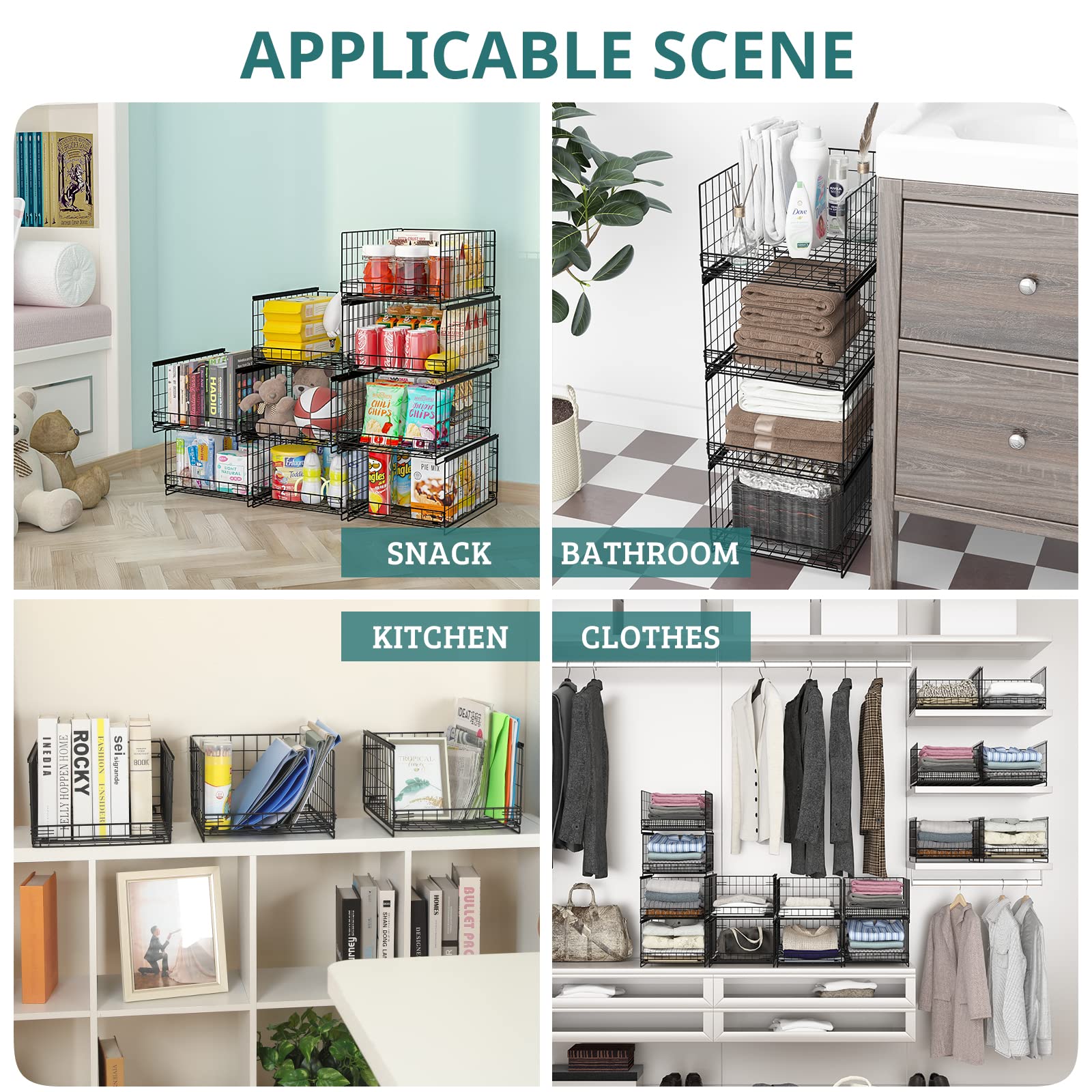 • [Multi-Use Storage Solution]: 4-tier stackable closet organizer bins for organizing clothes, pantry items, toiletries, office supplies & more! Space-saving vertical design fits closets (bedroom/entryway), kitchens, office or study areas. Achieve clutter-free spaces in 5 mins
