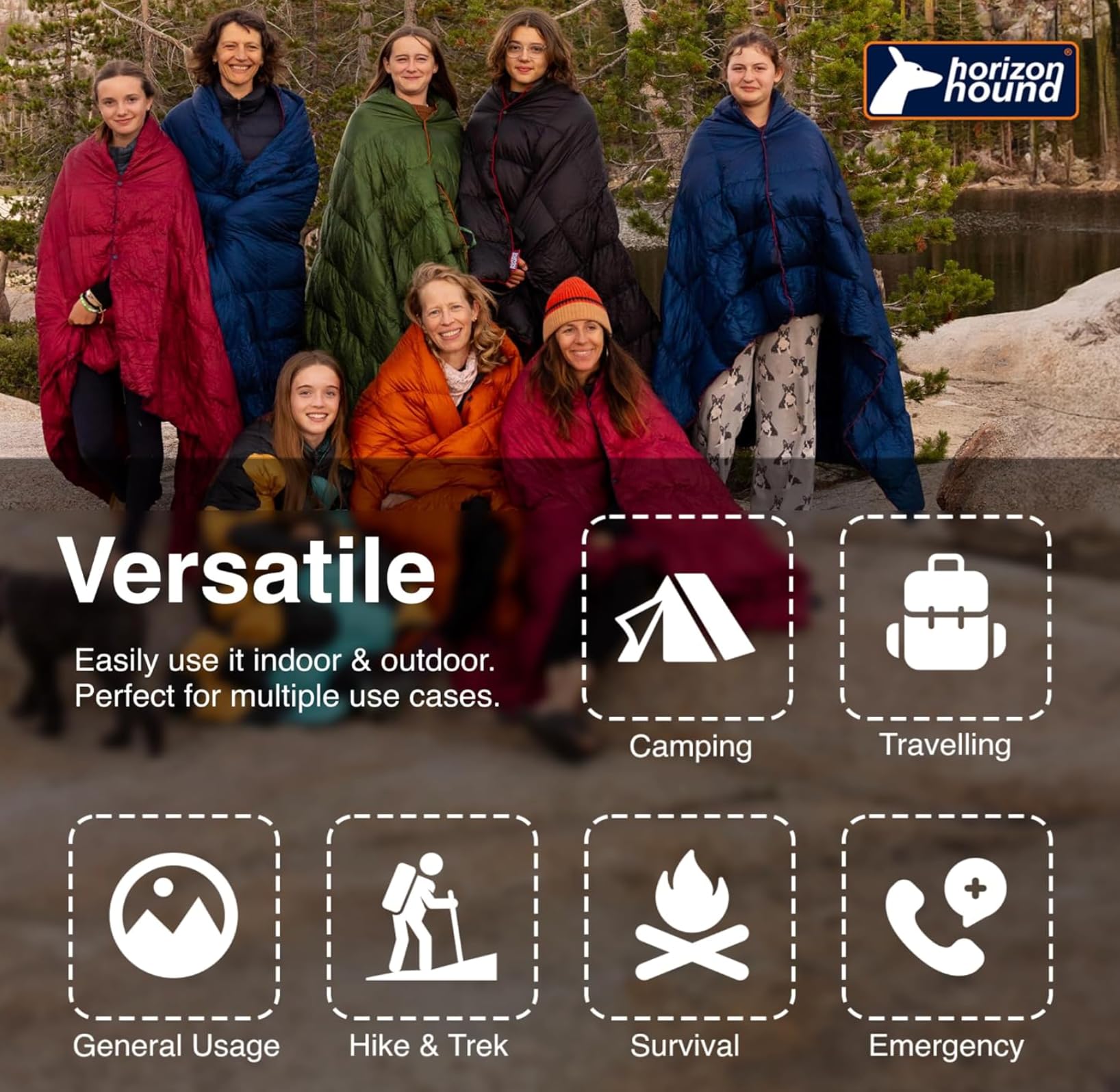 Horizon Hound Trek Down Camping Blanket - Outdoor Travel Quilt, Green | Insulated, Lightweight & Warm Gear for Sleep, Camping, Stadium, Hiking & Festivals | Water Resistant, Packable & Compact