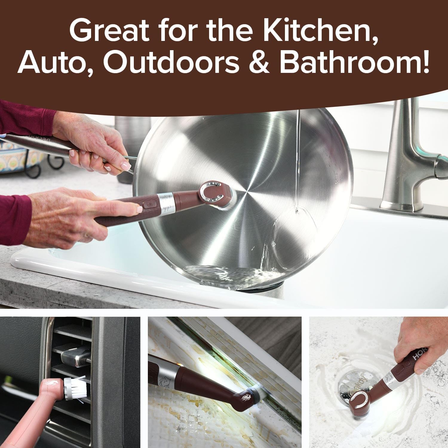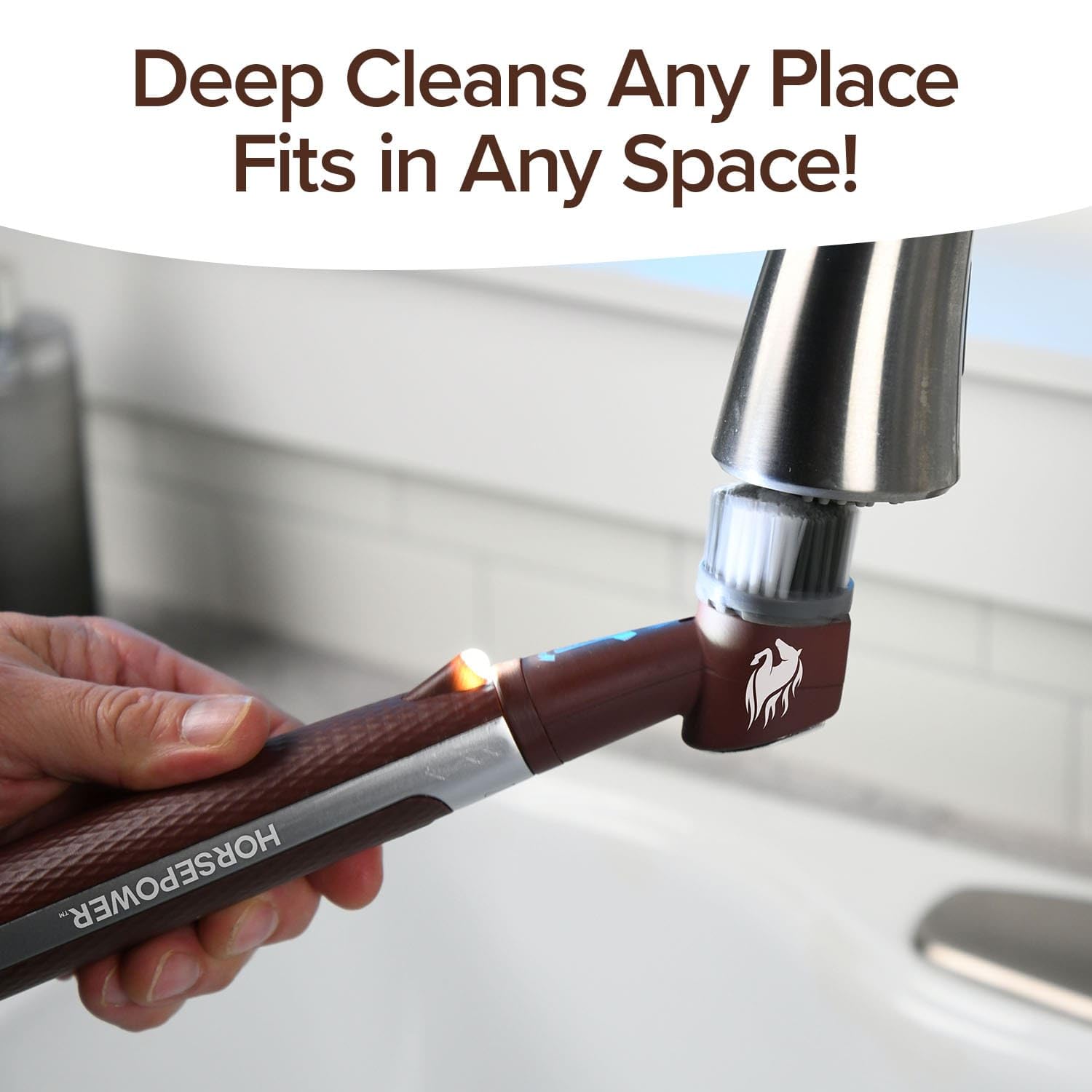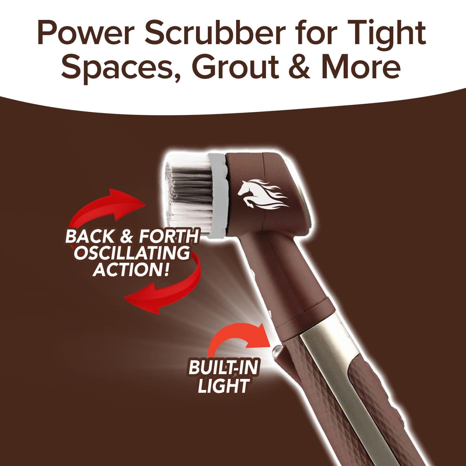 Horsepower Pocket Pony, AS-SEEN-ON-TV, Waterproof, Cordless, Pocket-Sized, Oscillating Power Scrubber, Deep Clean, Tight Spaces, Rechargeable, Grout Lines, Corners & Detailing, 5 Brush Heads & LED