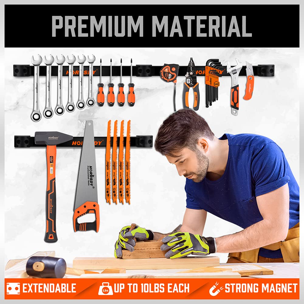 • 2. Magnetic Tool Rack is easy to install, and each guide rail can be linked together with the accompanying expansion accessories. Up to 48 inches