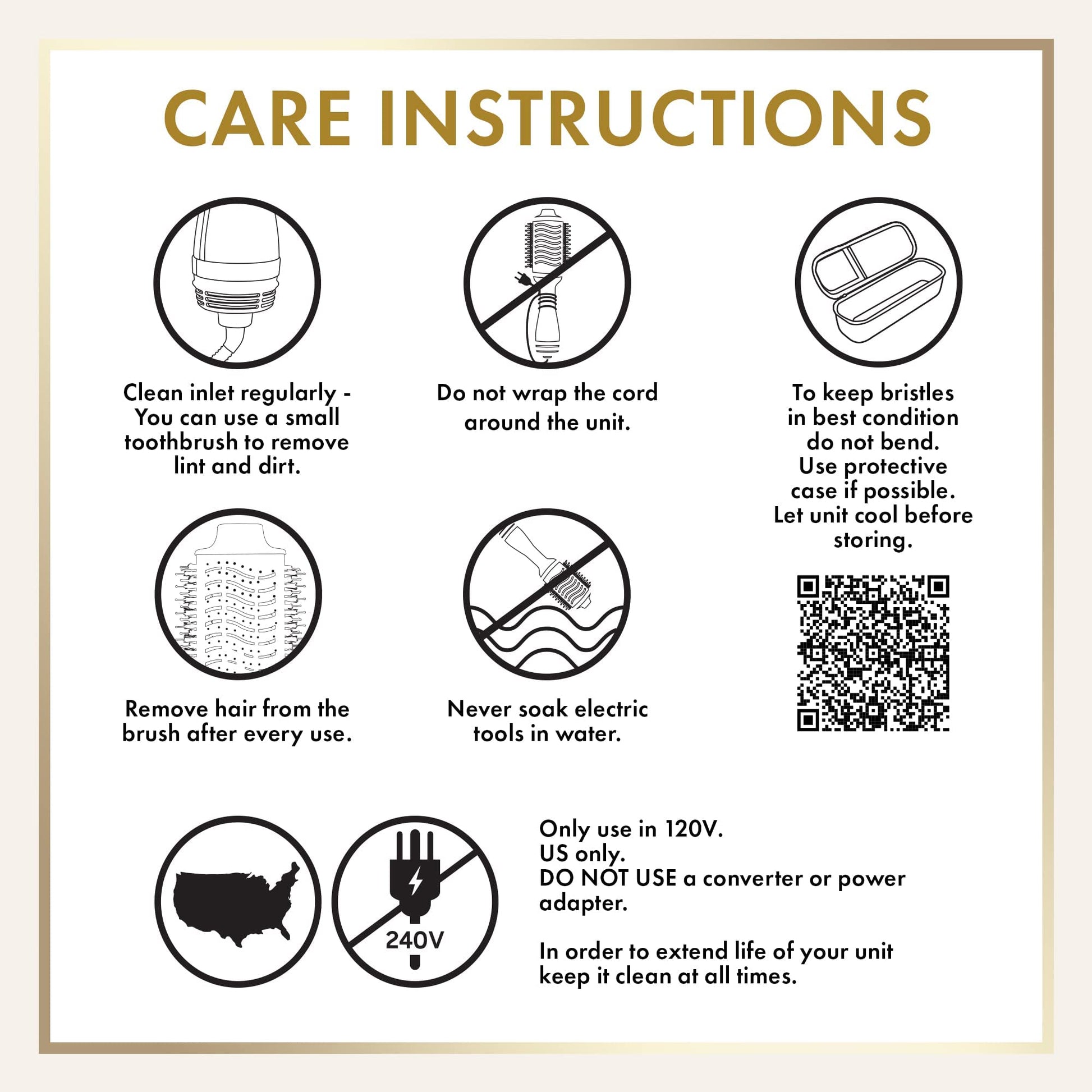 The Hot Tools Pro Artist 24K Gold Charcoal Infused One-Step Volumizer is dependable in every way. Starting with the design, the versatile oval brush design has gently curved sides created to smooth hair, while the rounded edges help craft volume from the roots down to beautifully curled ends. Just one step to gorgeous styles. A styling surface designed with our tried and trusted 24K Gold Technology delivers even heat distribution that’s essential to consistent results. Plus, it’s ideal for all hair types Direct ION Technology helps maintain a neutral charge on the hair’s surface, leaving the hair looking conditioned and smooth, while helping reduce frizz and static for shiny, healthy-looking hair. Designed with unique airflow vents to accentuate a quick styling. Cutting edge Boar Tech 2 Bristles complete with silk glide perfect the styling results with a silky-smooth finish. Complete with a rotating temperature control and three speed settings providing ultimate styling control. Fast styling with a blow dryer brush, hair dryer brush, hair straightener brush, and curling brush—all in one What more could you need? A comfortable styling experience The lightweight design and soft-touch finish provide a relaxed grip. Equipped with an 8 ft. Professional cord giving you all the range of movement and reach you need. The one-step unit is designed for 120V USA outlets only; we do not recommend use of a voltage adapter or converter, as it will damage the unit. Note wattage will vary depending on the location of use. *Based on Forsta Hairstylist Survey August 2024. 7-Year Warranty.