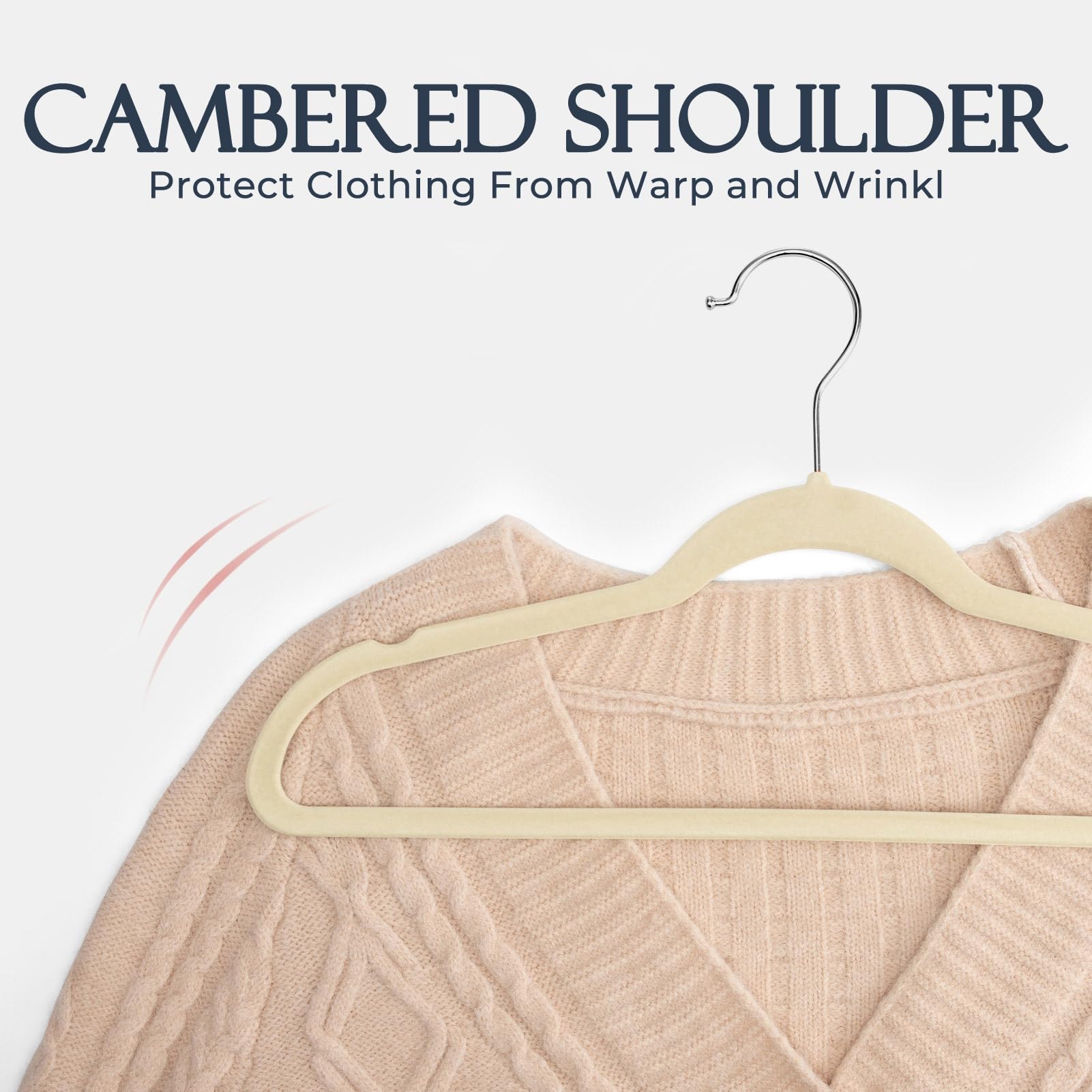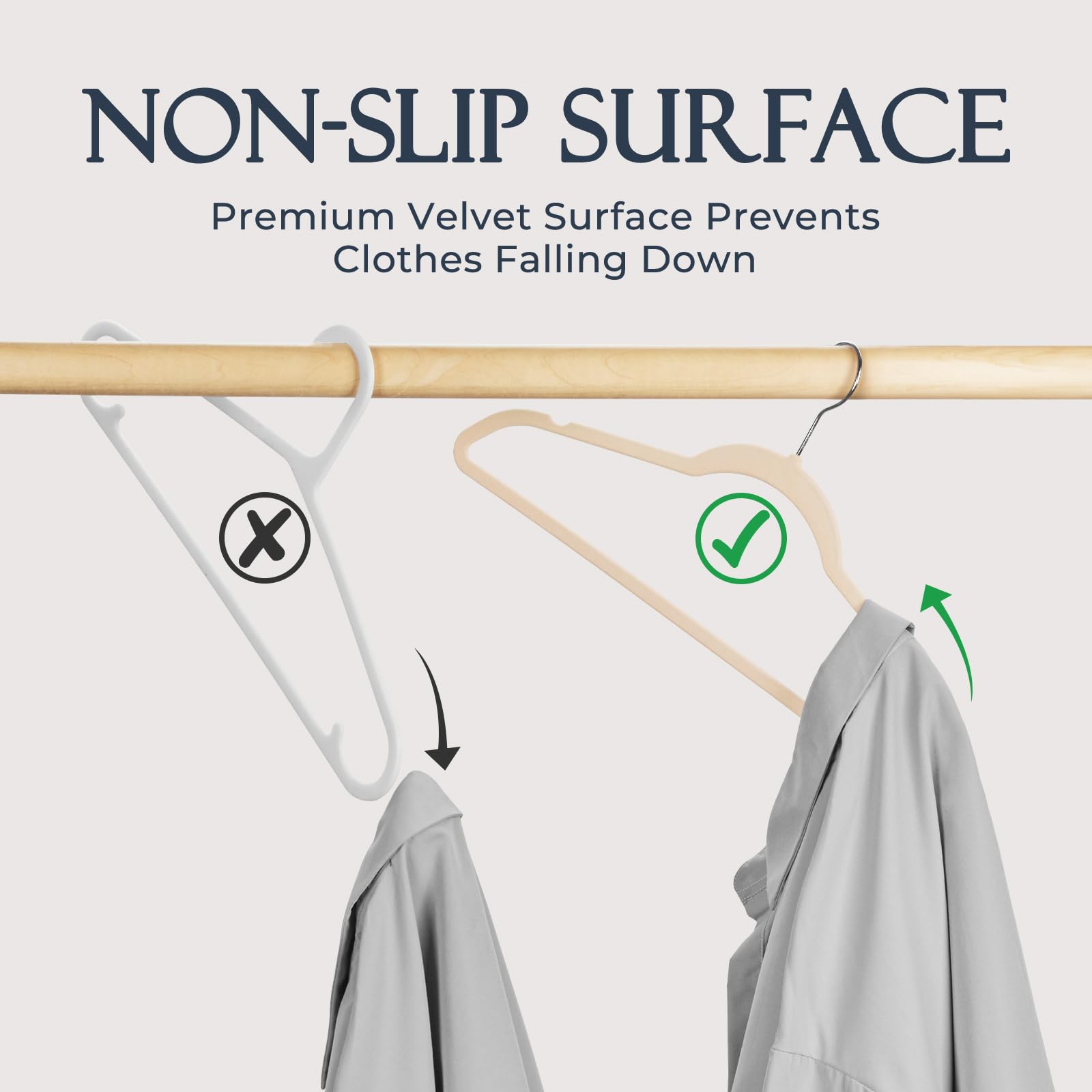 HOUSE DAY Beige Velvet Hangers 20 Pack, Non Slip Clothes Felt Hanger Heavy Duty for Coat, Premium Slim Space Saving Suit Hangers for Closet Organizer, 360° Rotating Silver Hook