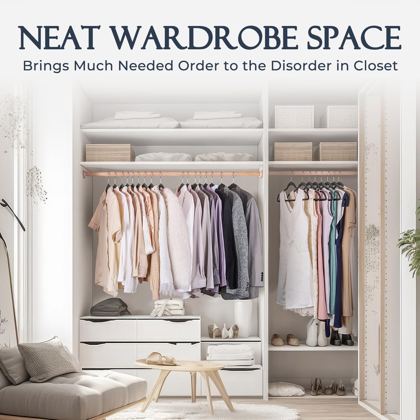 • Non Slip Design: The specially developed shoulder line help to promise worry-free preservation of the clothing's shape; The groove on shoulder could be used to hang clothes with thin shoulder strap, great without slipping off for clothes on closet storage