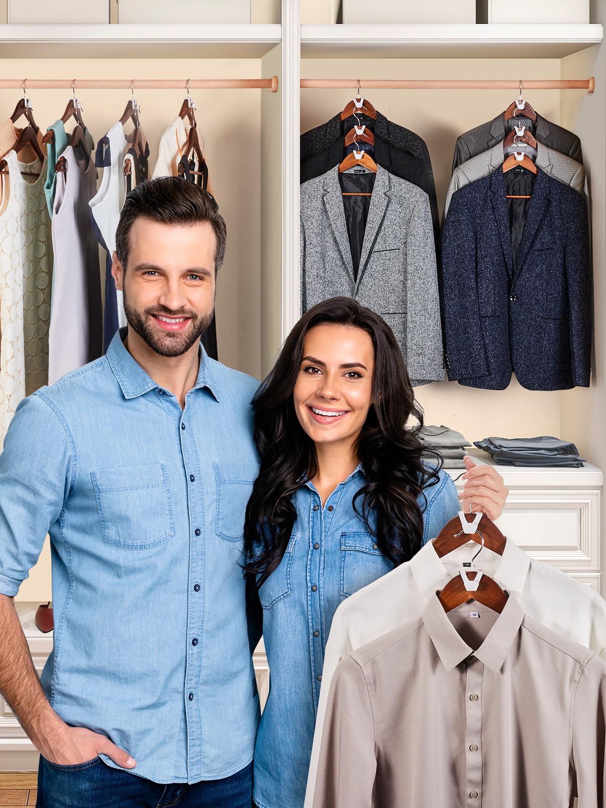 • 【Fit Most Hangers 】These ultra space saving hanger organization measure 1.6”x1.3”x1.2”(LxWxH) and are suitable for many different kinds of hangers, including plastic hangers, velvet hangers, wooden hangers, metal hangers, sponge hangers, as well as baby clothes hangers, pants hangers, and skirt hangers.