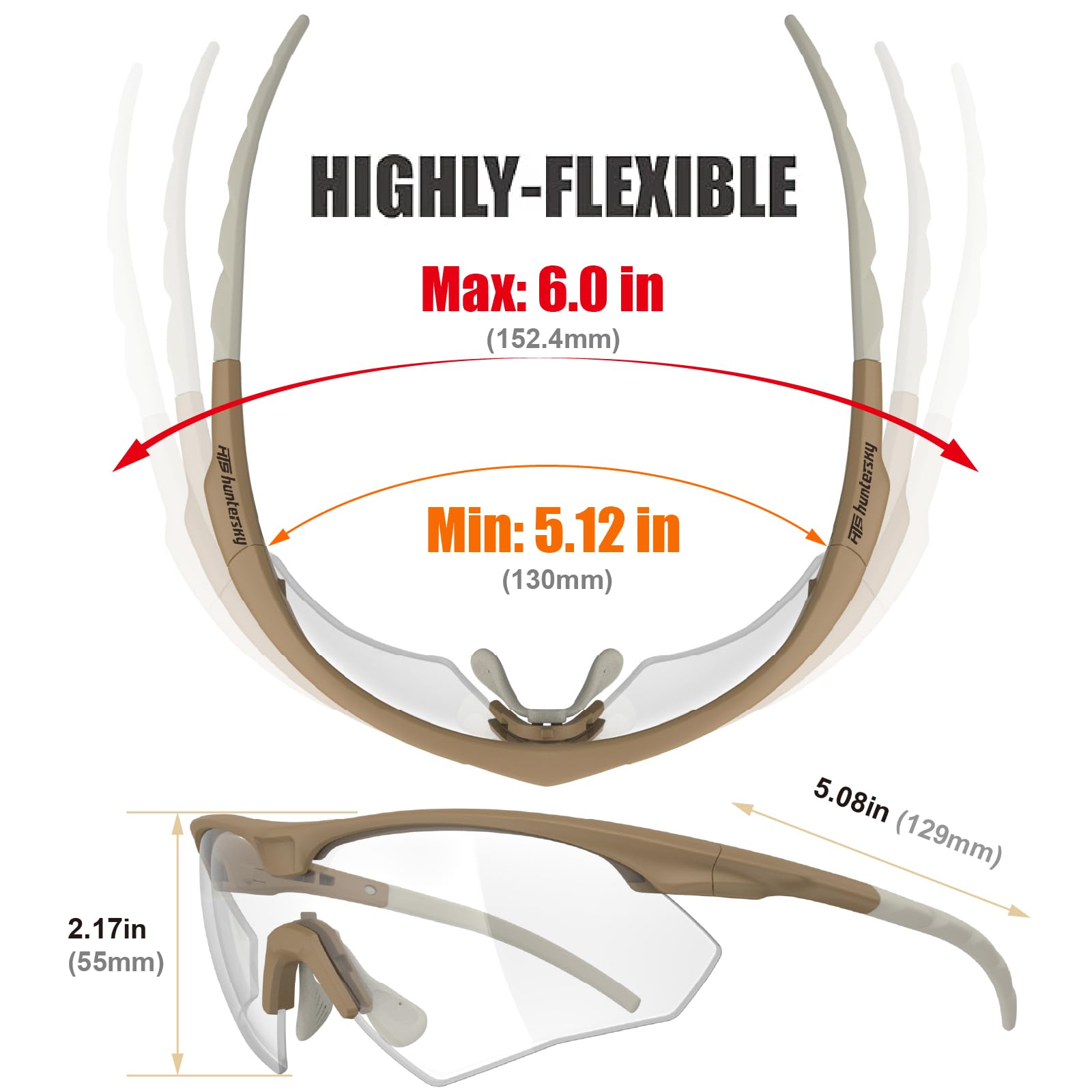 • 【Military-Grade Protection】ANSI Z87.1+ compliant, meets OSHA requirements, in-house lab simulation tests withstand the U.S. standard MIL-PRF-32432A 4.8.4 ballistic impact velocity exceeded 725 ft/s. The frame adopts a bow-shaped design, which gives a good sense of body-eye coordination and control over the strength and endurance of archery while providing ultimate eye protection.