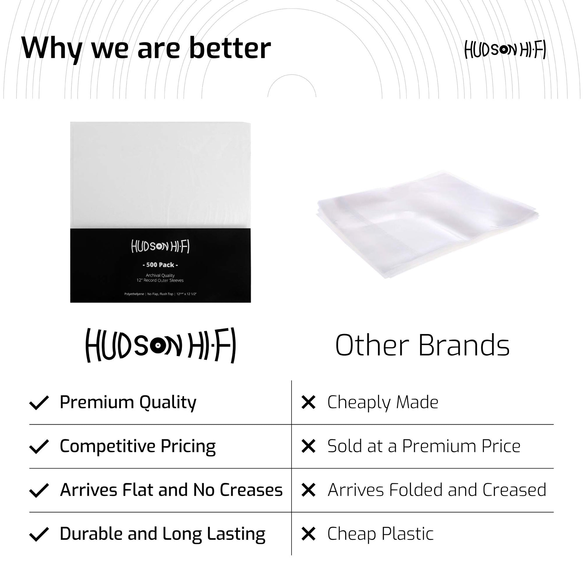 Hudson Hi-Fi Vinyl Record Outer Sleeves Covers - Premium Clear Vinyl Record Sleeve 100-Pack - Protect Your LP Albums from Scratches, Dirt & Dust - 3mm Thick No-Acid Exterior Disc Cover