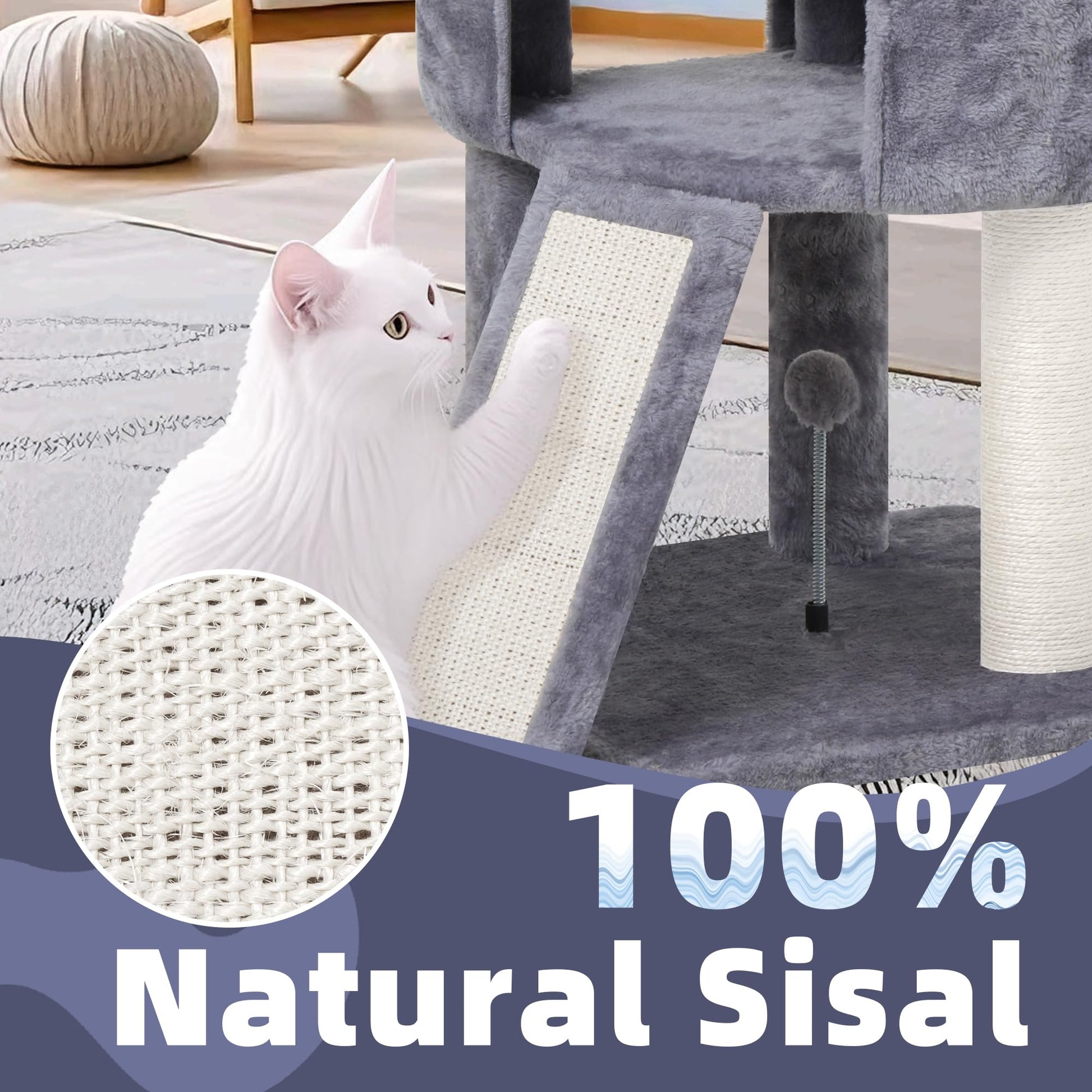 • Furniture-Friendly Scratching Posts: Natural jute-wrapped posts protect sofas and carpets by channeling scratching instincts into healthy, stress-relieving play and nail care