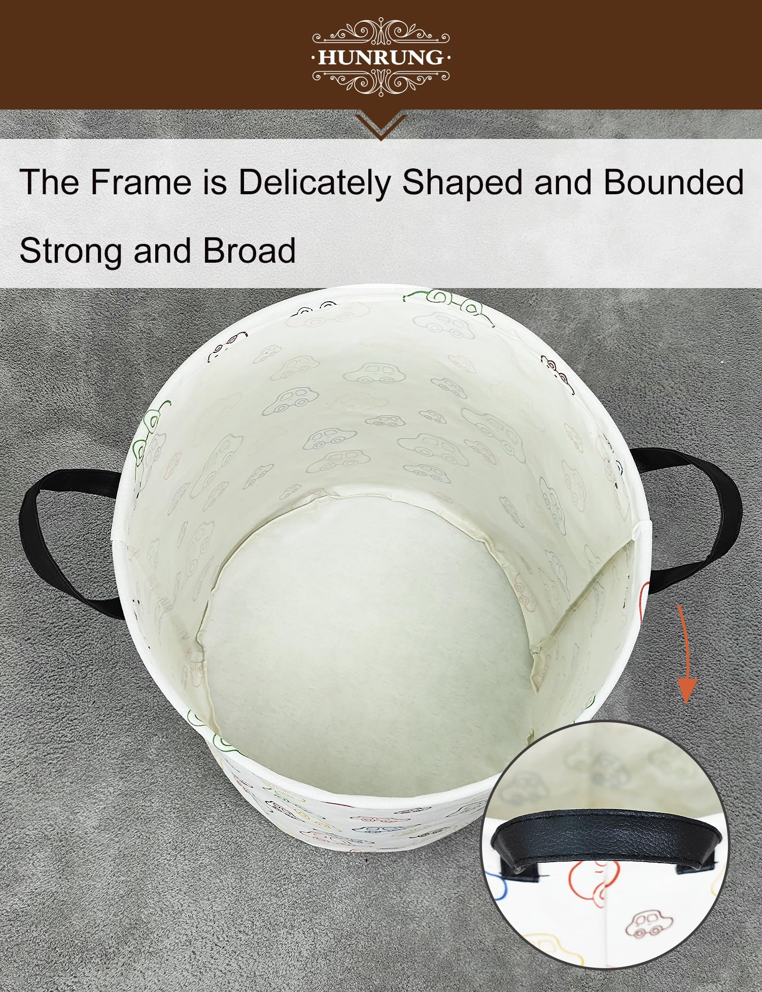 HUNRUNG Laundry Hamper,Large Canvas Fabric Lightweight Storage Basket Toy Organizer Dirty Clothes Collapsible Waterproof for College Dorms(Round-Car)