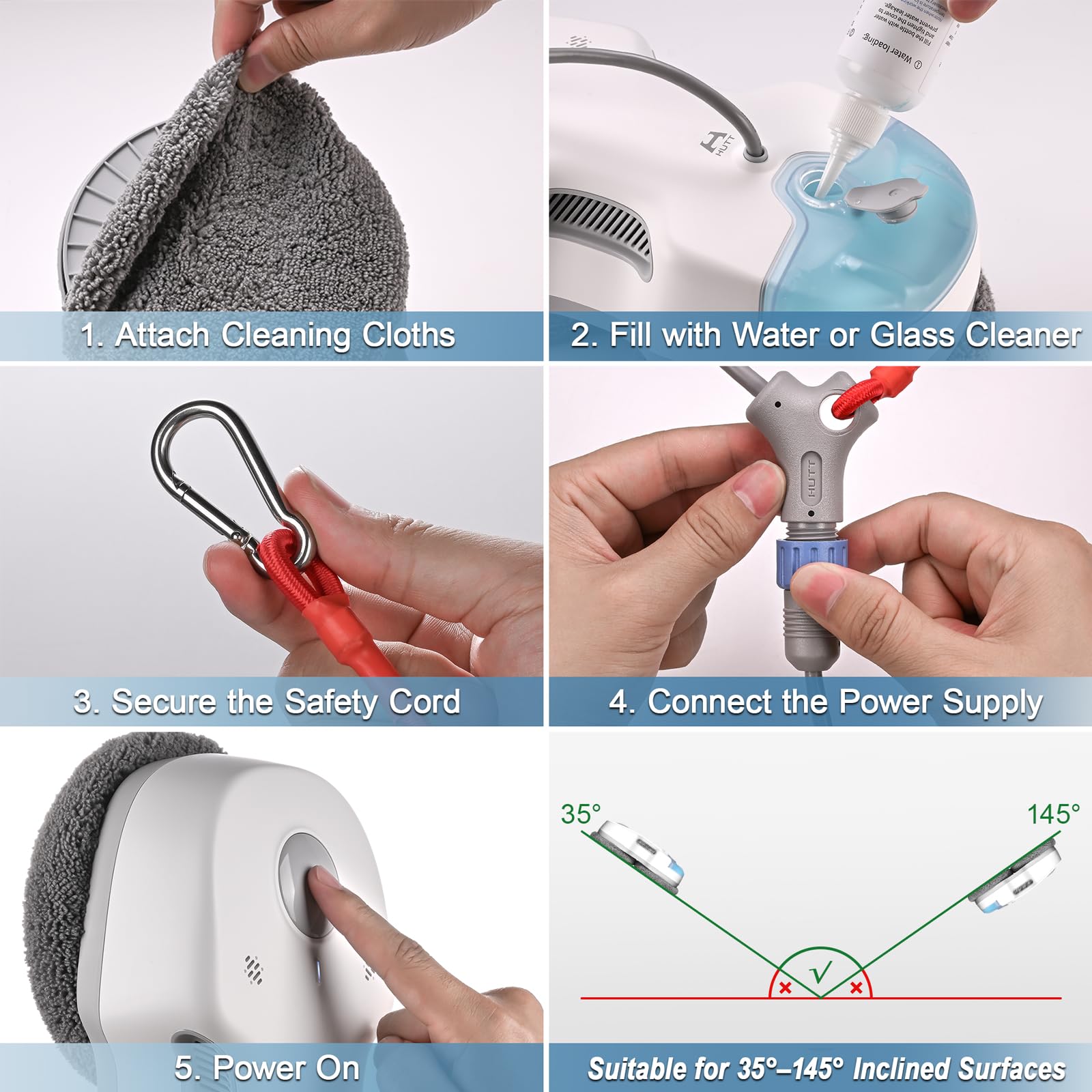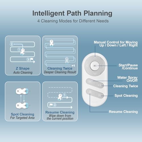 • 🎼【 Simple Remote Control Operation】One-button start and full remote control give you effortless access to hard-to-reach windows. Enjoy sparkling glass without the ladder or hassle.