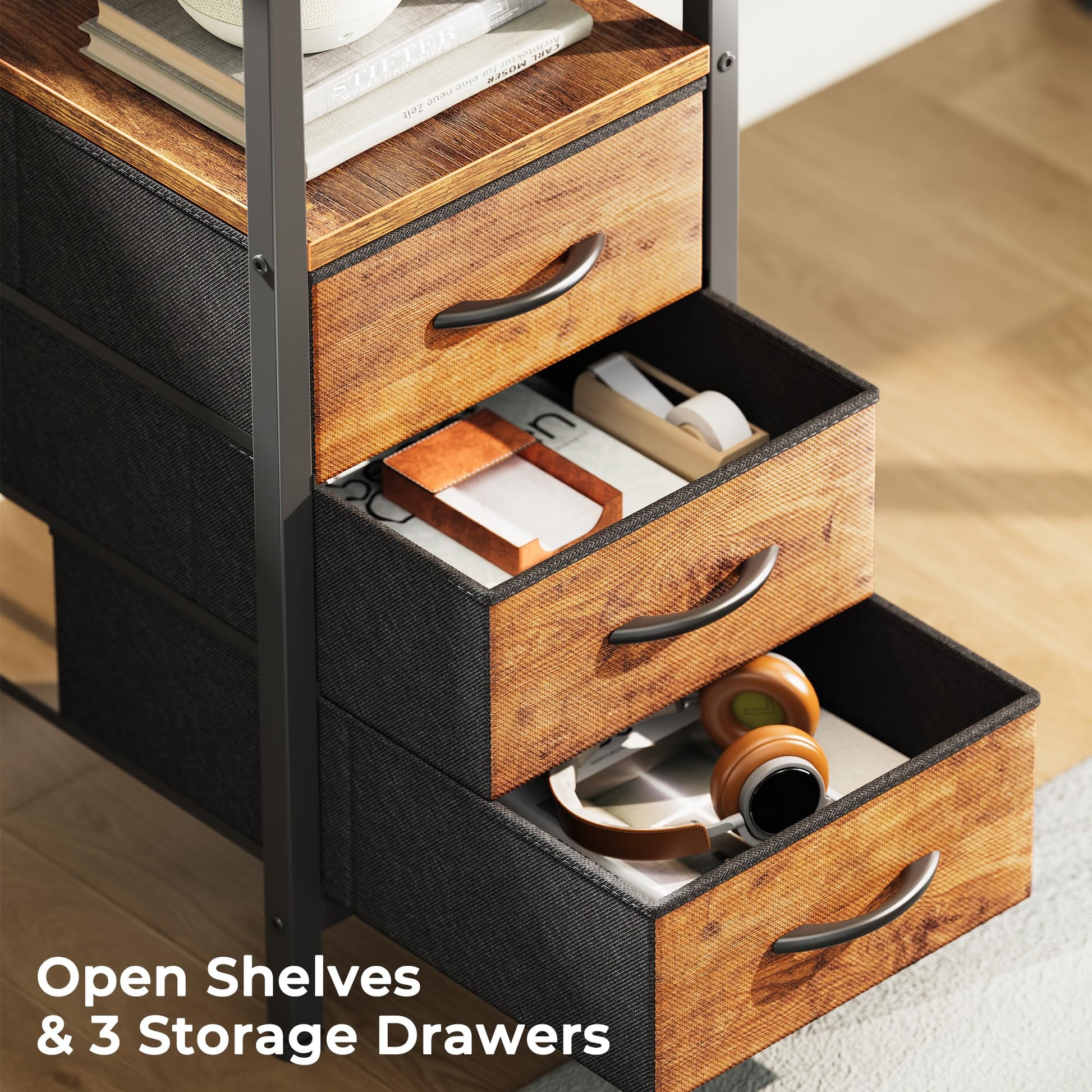 Huuger L Shaped Office Desk with Power Outlets, 47 Inch Computer Desk with 3 Drawers, Shelves, for Gaming, Corner Work, Home Office, Study, Rustic Brown