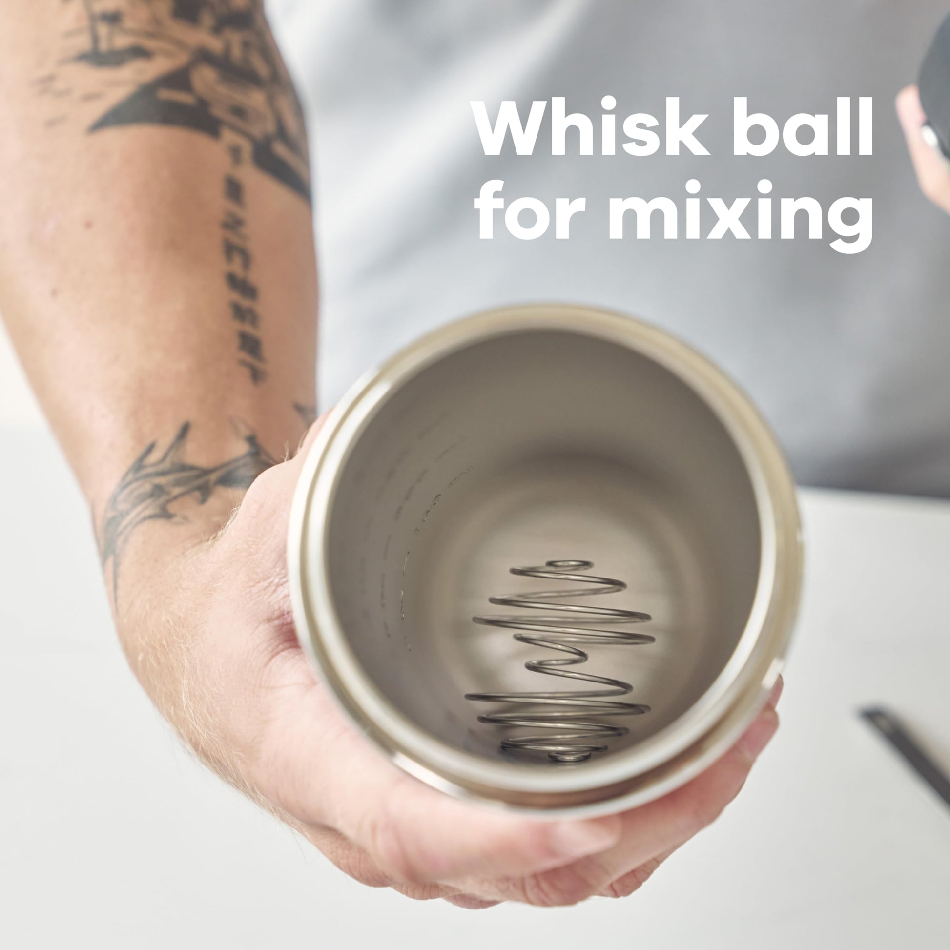 • WHISK BALL: The stainless steel whisk ball makes for quick and easy mixing, even the thickest supplements. INTERNAL MEASUREMENT MARKERS ensure easy prepping and mixing.